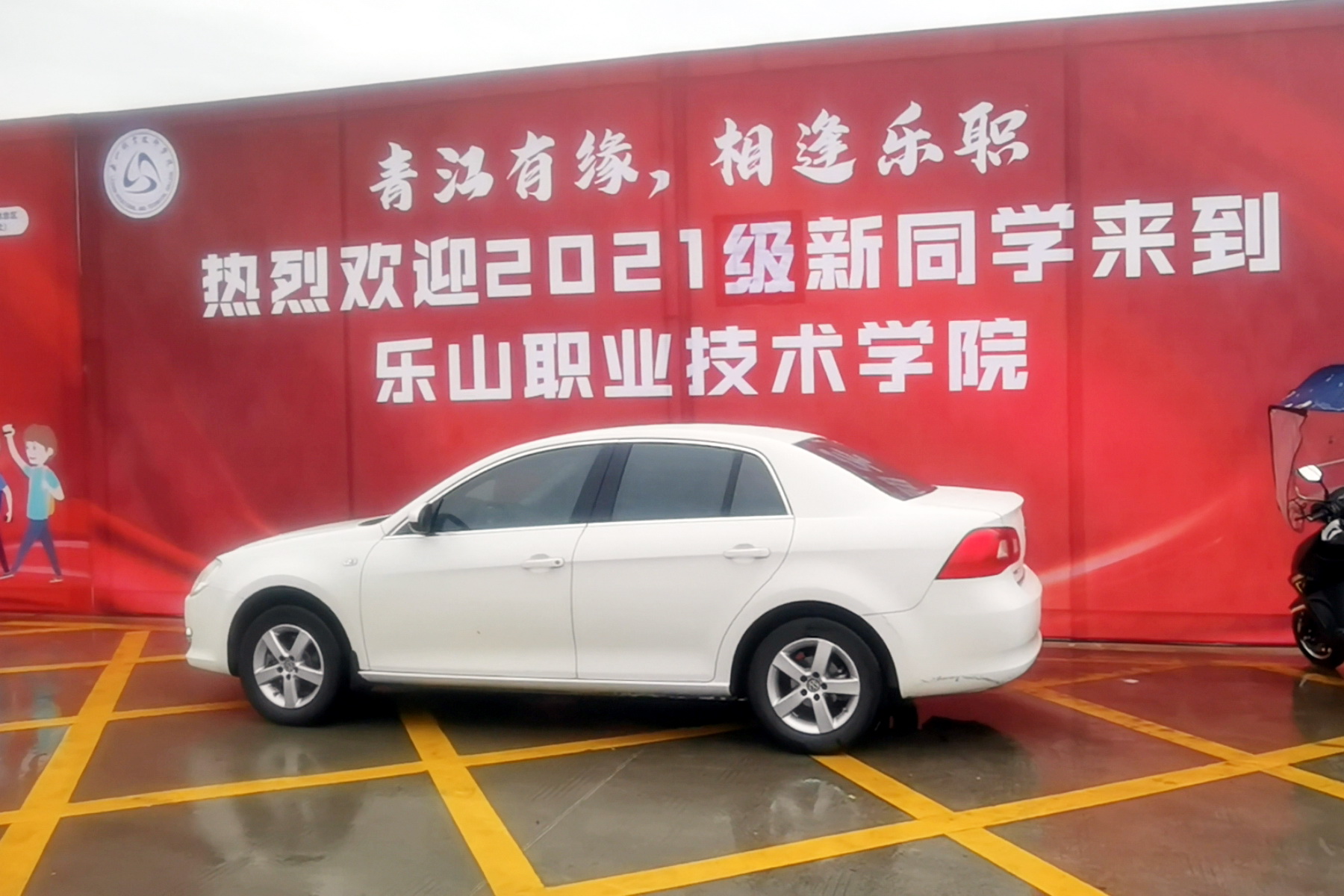 校门口,巨大的红色迎新墙异常醒目,上书:“青江有缘,相逢乐职——热烈欢迎2021级全体新同学来到美丽的beat365亚洲版官网。”