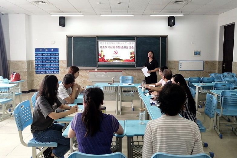 根据学院关于召开党史学习教育专题组织生活会的安排,2021年8月27日下午2点,马克思主义学院党总支教工一支部在教学楼1A409教室召开党史学习教育专题组织生活会。学院党委委员、副院长鲍学东、马院党总支书记郑平出席会议。一支部全体党员同志参加了会议,会议由党支部书记李晓勤主持。