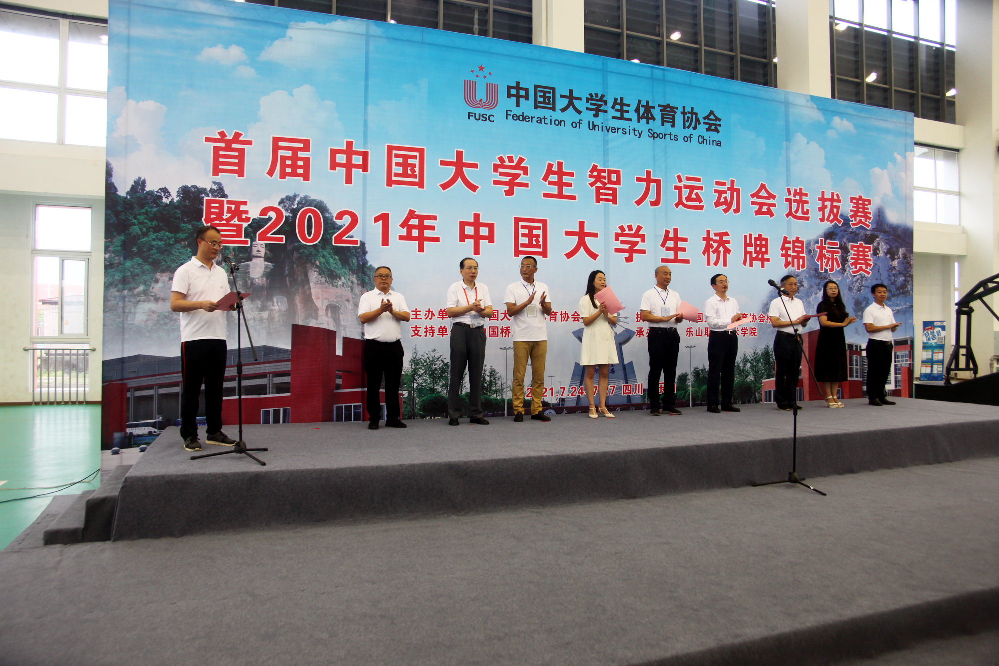 2021年7月24日上午,beat365亚洲版官网体育馆热闹非凡,首届中国大学生智力运动会选拔赛暨2021年中国大学生桥牌锦标赛在此隆重开幕。中国大学生体育协会桥牌分会主席沈超、中国大学生体育协会桥牌分会副主席蹇路,四川省教育厅体卫艺处副处长江岷霞,乐山市人民政府副秘书长兰守奇,乐山市教育局副局长周芹,学院副院长张学河、封家福等领导参加开幕式。开幕式由beat365亚洲版官网院长刘忠主持。