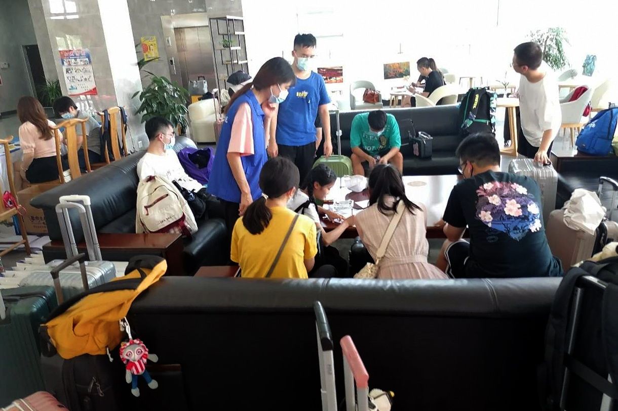 7月22日,参加“首届中国大学生智力运动会选拔赛暨2021年中国大学生桥牌锦标赛”的部分队伍,在志愿者同学的引领下,已陆陆续续抵达beat365亚洲版官网。