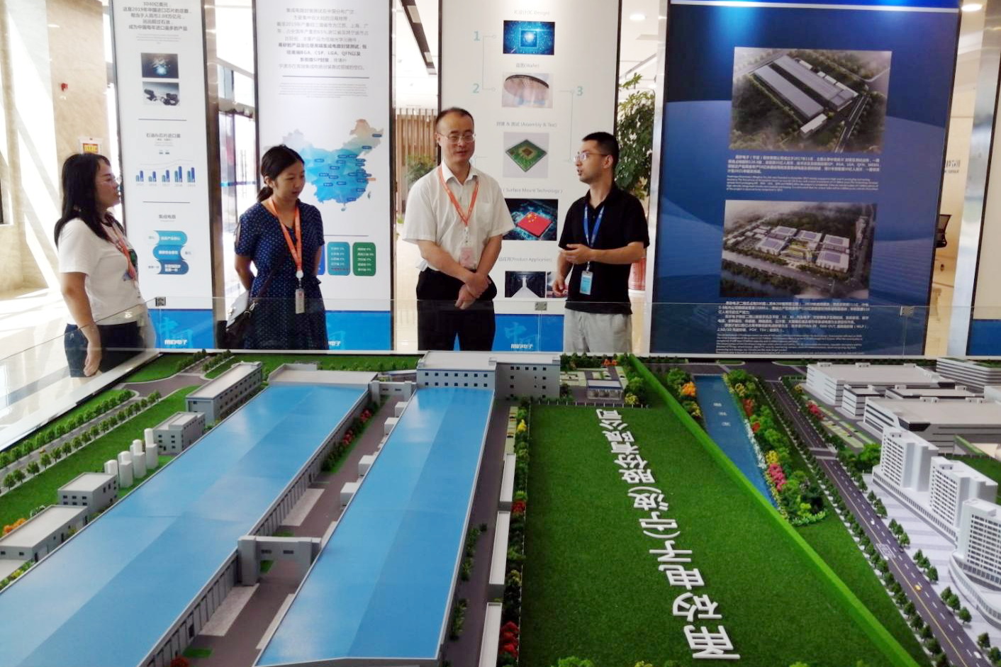 交流会后,刘忠一行参观了解了甬矽电子的总体规划布局和发展历程,并在公司人力资源部总监杨士杰和技术人员的陪同下参观了生产线,听取了生产线各工序、岗位的介绍。