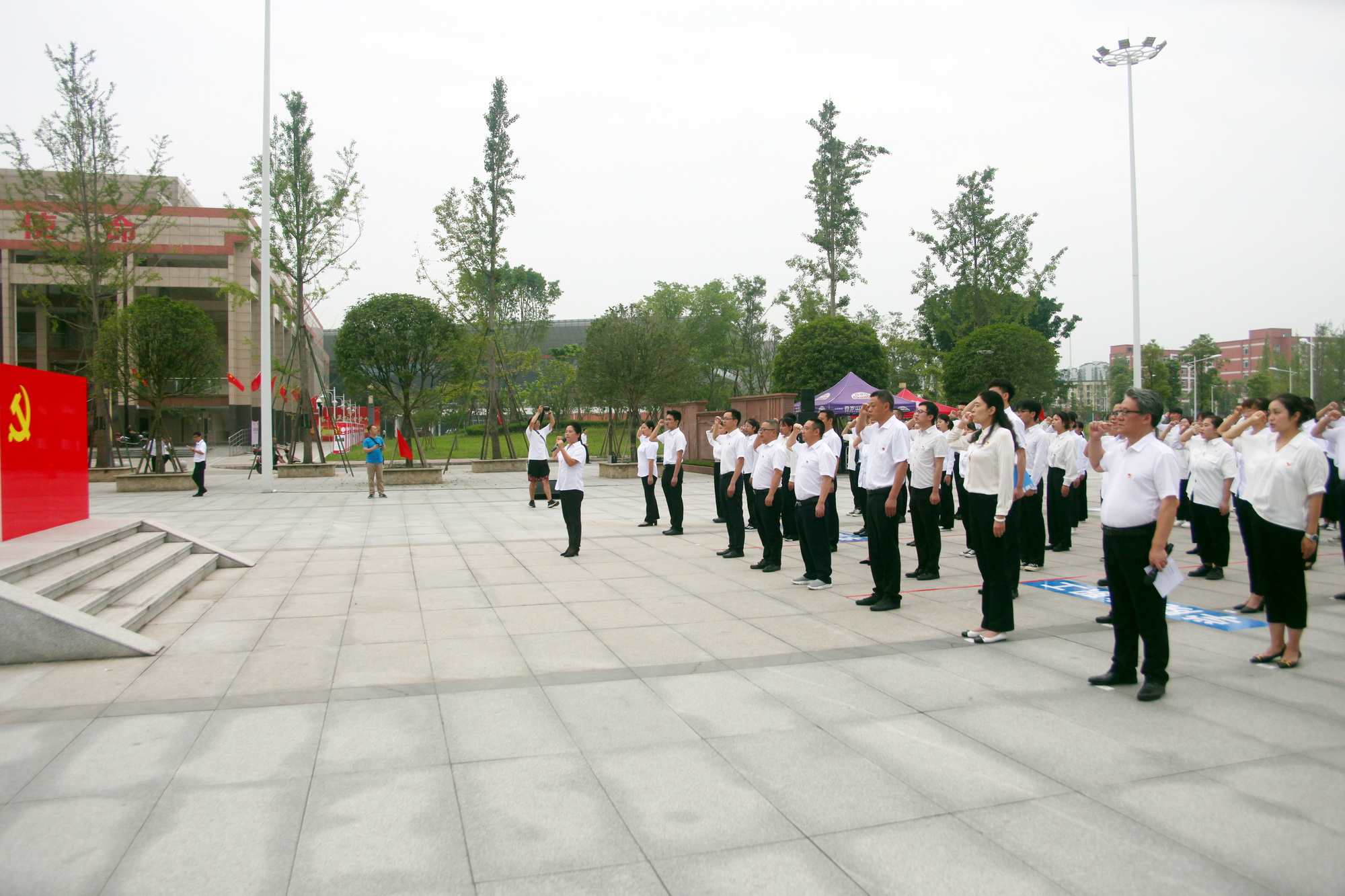 宣誓活动在国际歌中开场,所有预备党员在老党员李萍同志的领誓下面向党旗庄严宣誓。