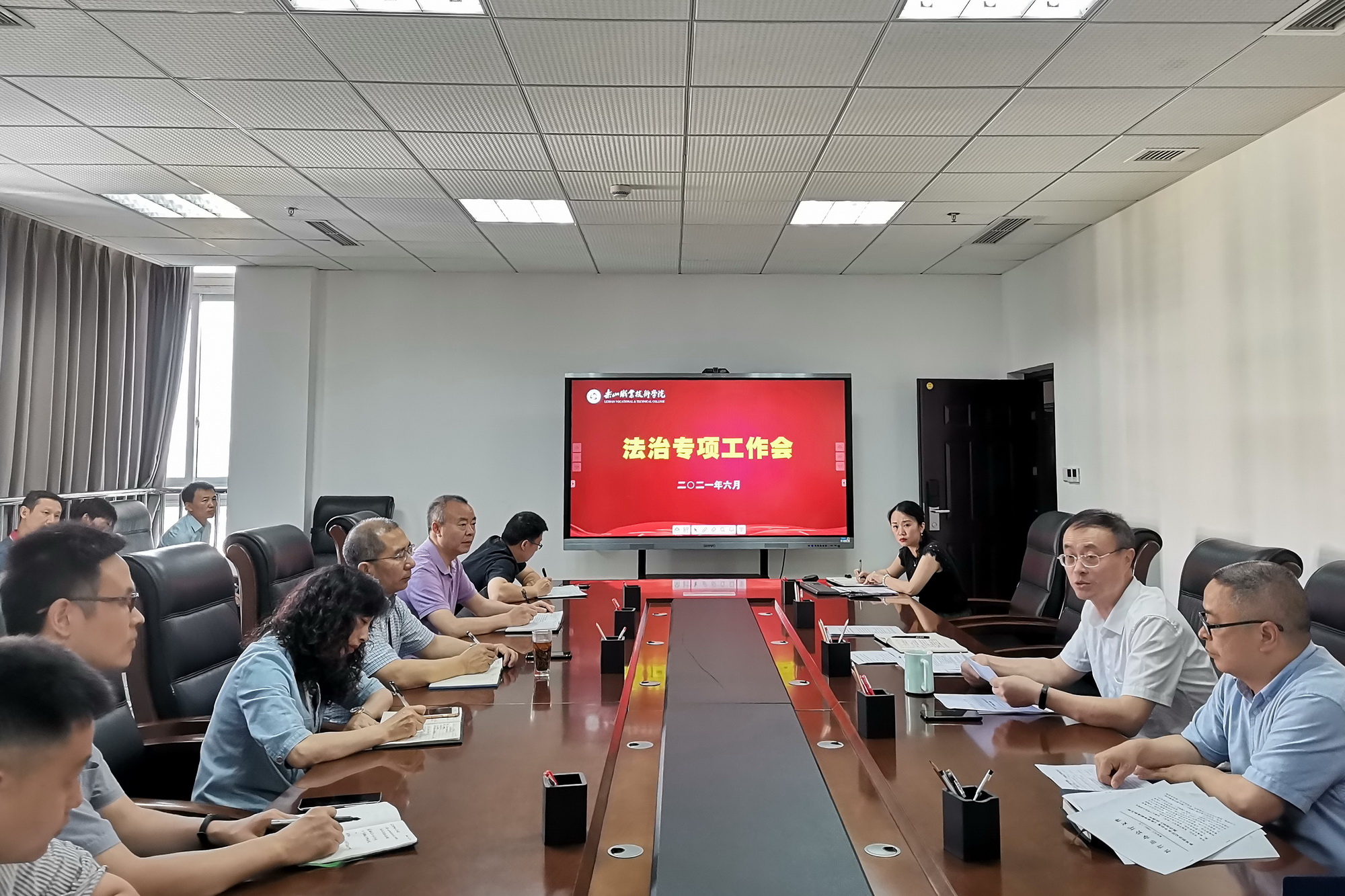 2021年6月22日上午9点,学院在行政楼324会议室召开了法治专项工作会议。院长刘忠、副院长张学河,各处室、系部负责人参加了会议。会议由党政办公室主任王渊民主持。