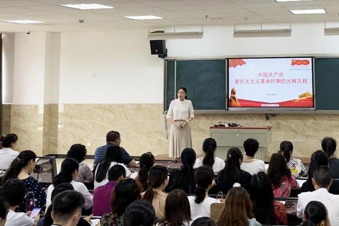 为庆祝中国共产党成立100周年,重温党的光辉历程,推动党史学习教育的深入开展,学院党委书记易群于6月16日深入医护系开展了党史学习教育专题党课,医护系全体党员教师及在校学生党员参加。