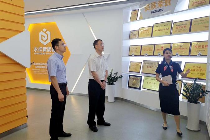 刘忠一行先后参观了永祥体验中心,永祥新能源观景台、主控大厅、厂区,随后与企业人员进行了交流座谈。座谈会上,易继成副总经理介绍了公司发展历程,并表示永祥的发展得益于乐山作为晶硅发源地的资源优势,得益于学院培养输送的大批优秀人才的支撑。校企双方合作历史悠久,未来在人才引进、员工学历提升、技能培训、科研项目申报等领域也有广阔的合作前景。