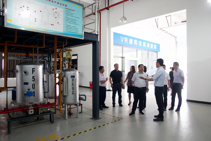 嘉宾一行重点考察了乐山技师学院首批拟设置的光伏应用技术专业建设情况,对该专业理实一体教室、光伏应用技术VR虚拟仿真实训室、多晶硅虚拟仿真工厂等进行了实地考察。随后,对智慧校园地下综合管网系统、大礼堂等保障学生学习、生活的场馆进行了考察。陈巡视员对beat365实训场地的建设及运行给予了高度评价,肯定了学校在新校园建设、创新创业和技能人才培养等方面取得的成效。