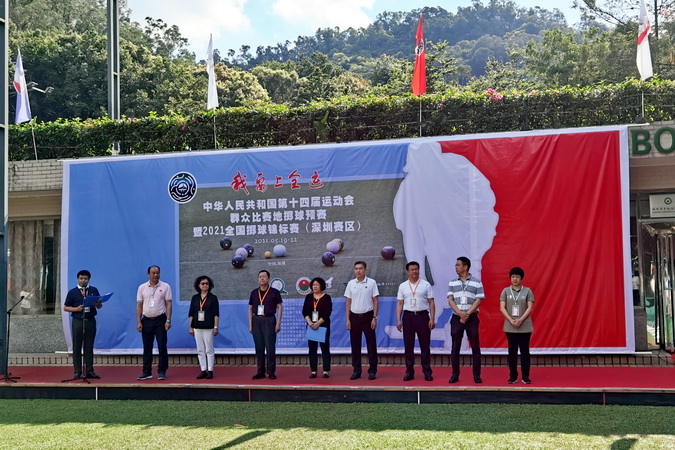 5月19日上午,“我要上全运”第十四届全国运动会群众比赛地掷球项目预赛暨2021全国掷球锦标赛(深圳赛区)开球仪式在深圳举行。