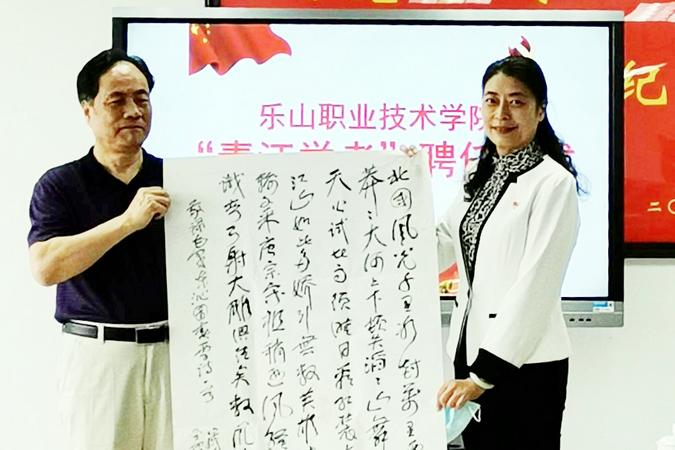 易群首先向郭必选教授颁发了beat365亚洲版官网“青江学者”特聘教授聘任证书,郭必选赠予学校全套专著《延安学研究》以及他本人创作的《延安是魂》、《沁园春.雪》两件书法作品。双方就“延安精神”、“红馆”建设和思政课改革等内容进行了深入的交流。