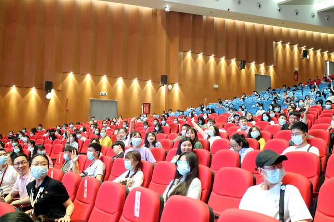 “回答正确!”决赛现场掌声连连,三类题型不仅考验选手们的知识储备能力,还考验着他们的细心程度,比赛角逐激烈,令人目不转睛。随着台上四支队伍不断回答问题,选手们的精彩作答让礼堂内气氛高涨。值得一提的是,关联题中红色歌曲听歌识曲受到现场学生观众的好评,几首悠扬而熟悉的红色旋律在礼堂内播放,引发不少学生观众轻声哼唱。除了台上队伍的答题环节,本次竞赛还安排了互动环节,观看知识竞赛的学生积极参与,争相举手作答,“选我”“我来回答”等声音不时响起,充分调动了在场学生学习党史的积极性,切实达到了让广大青年学党史、感党恩、听党话、跟党走的教育效果。