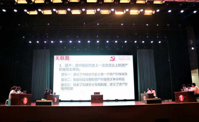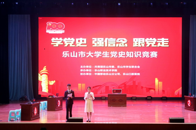 今年是中国共产党成立100周年,为进一步在全市大学生开展党史学习教育,2021年5月14日,由共青团乐山市委、乐山市学生联合会主办的乐山市大学生“学党史、强信念、跟党走”党史知识竞赛决赛在学院礼堂举行。本次活动由学院团委承办,此次竞赛经过一个月的精心筹划、动员宣传和层层竞赛。最终,西南交通大学峨眉校区、乐山师范学院、成都理工大学工程技术学院以及beat365亚洲版官网学生组成的四支队伍进入决赛。