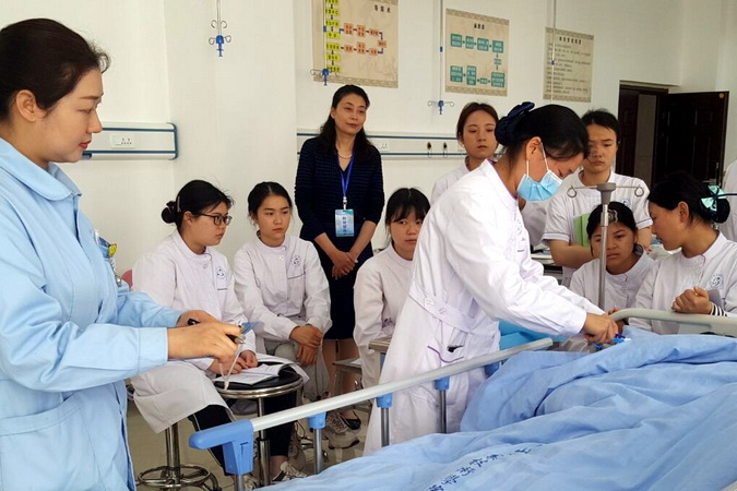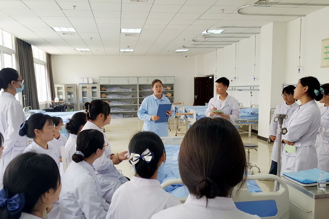 易群先后来到马院和医护系,认真听取了青年教师姚佳秀和董玉琴讲授的《毛泽东思想和中国特色社会主义理论体系概论》理论课和《口腔护理》实训课,围绕教学理念、课程设计、教学方法、课程资源等与两位老师进行了交流探讨,对其积极负责的教学态度、良好的教学效果表示肯定。易群强调,目前,全院上下正在掀起党史学习教育的热潮,这是党内政治生活中的一件大事,更是我们高质量深入推进教育教学改革、全面落实立德树人根本任务的有力抓手。教师在授课过程中,要落实“三全育人”要求,将课程知识与思想引领相结合,全面提升育人质量。