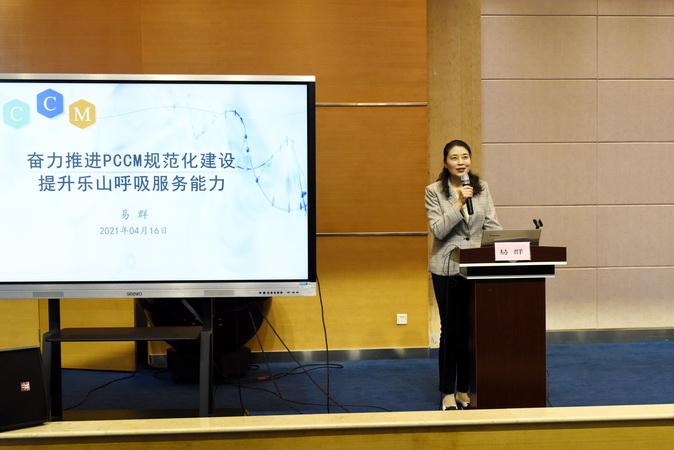 易群在主题报告《奋力推进PCCM规范化建设 提升乐山呼吸服务能力》中,阐述了奋力推进呼吸PCCM规范化建设的必要性、紧迫性及长远意义,号召全市各级医疗机构积极提升呼吸服务能力。易群教授从国内到国际、从政策到临床,深入浅出、形象生动的表述,让与会者豁然开朗,进一步提高了对呼吸与危重症医学科规范化建设的理解和认识。