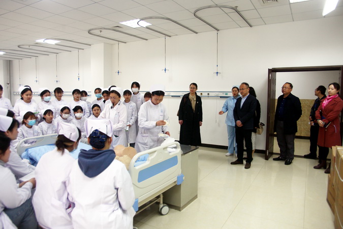 签约仪式后,张知贵陪同杨世平一行四人参观了学院生命科学馆,以及医学、护理相关专业的实训基地和学生实训课堂情况,张知贵介绍了学院医学、护理专业的人才培养体系和学生专业能力培养等情况。