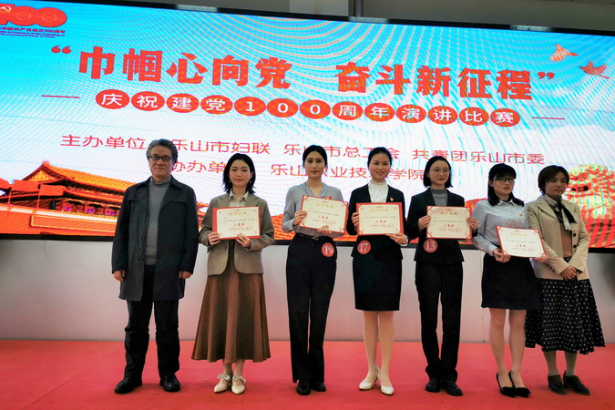4月15日下午,由乐山市妇联、乐山市总工会、共青团乐山市委主办,beat365亚洲版官网协办的“巾帼心向党 奋斗新征程”演讲比赛,在学院学术交流与培训中心举行。主办单位相关领导莅临比赛现场,学院党委副书记陈芝海代表学院出席活动并为获奖选手颁奖。来自全市各区县、市级机关、企事业单位、高校的20名女性选手参加了演讲,演讲比赛由乐山广播电视台焦娟主持。