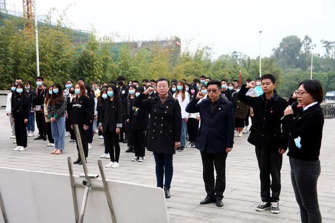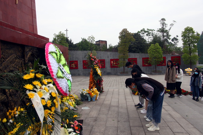 为扎实推进党史学习教育,引导全院青年学生学习革命先辈崇高精神,坚定理想信念,传承红色基因,2021年4月6日,由党委宣传部、组织人事部、院团委牵头,学院党员干部、入党积极分子、共青团员代表一行78人,赴乐山竹园烈士纪念园开展“走进初心地,学党史,缅怀英烈”党史学习教育现场活动。