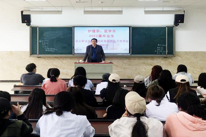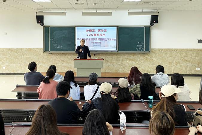 为推进2022届医护专业毕业生实习工作,3月17日下午,医护系邀请附属医院相关负责人,在教学楼2C302召开了“beat365亚洲版官网附属医院实习宣讲会”。护理系党总支书记郑平、附属医院副院长刘剑锋、护理部主任陈丽蓉、医务科科长许岚到会并作宣讲,医护系顶岗实习管理干事曾川及2022届毕业班级班长、学习委员和有意向前往附属医院实习的同学参加了会议。