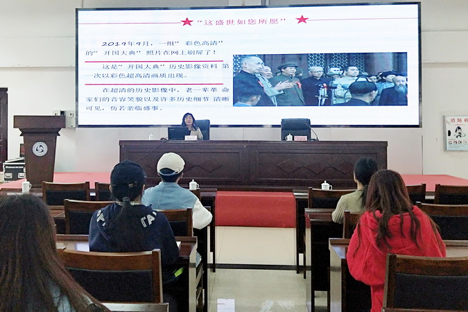本次报告会以“改天换地 奠定兴国大业”为主题,开展“新中国史”主题教育,用翔实的数据、具体的案例、生动的图片等形式,讲述了1949年中华人民共和国成立到1956年基本完成社会主义改造的重大历史事件,包括新中国成立之初民主革命的遗留任务、执政之初党的考验和党的任务、抗美援朝、全面恢复国民经济、全国人民代表大会“一大”的召开、三大改造与社会主义制度的确立等,深刻阐述这段历史的重大历史意义。