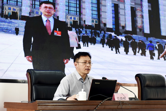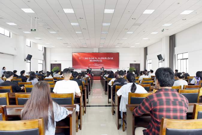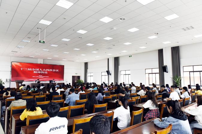 为认真学习宣传贯彻全国人民代表大会第四次会议精神,3月17日下午,学院党委在学术交流中心3004会议室组织召开十三届全国人大四次会议精神宣讲报告会。全国人大代表、四川乐山太阳能研究院院长姜希猛教授对十三届全国人大四次会议精神进行了宣讲。乐山市检察院第六检察部主任丁远新、第六检察部副主任童华、政治部综合宣传处副处长陈杨及学院学生代表参加了会议。报告会由学院党委宣传统战部部长石建华主持。