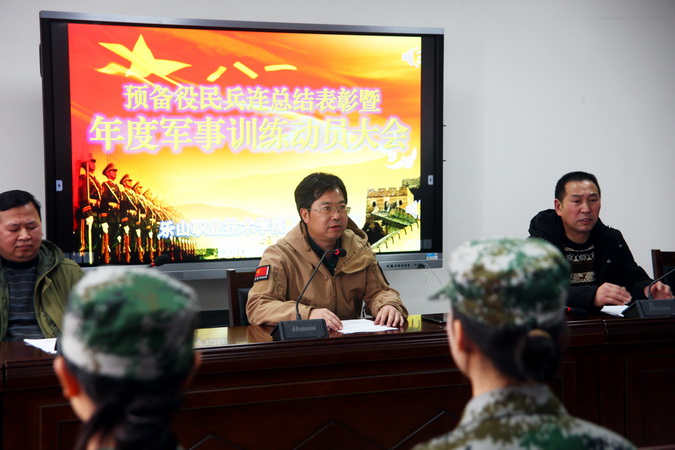 3月10日中午1时,学院武装部全体人员,民兵连92名战士在行政楼401会议室举行学院武装民兵连总结表彰暨2021年度军事训练动员大会。大会由学院武装部副部长李兴虎主持。