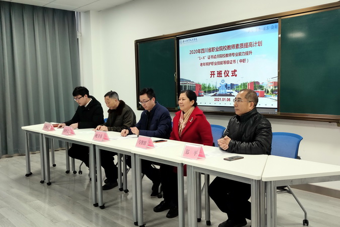 1月6日上午,国培项目“1+X证书试点院校教师专业能力提升”之“老年照护职业技能等级证书(中职)培训”开班仪式,在beat365亚洲版官网教师发展中心举行,学院副院长鲍学东出席并致辞。乐山市人民医院工会主席、科教部部长、护理专业带头人、国家级职业教育教师教学创新团队负责人马智群,护理系党总支书记郑平、医护系主任谯时文,本次培训的授课教师以及全体参训学员参加了开班仪式。开班仪式由学院人事处副处长周书来主持。