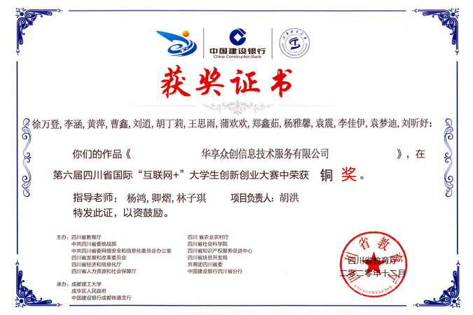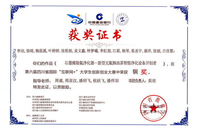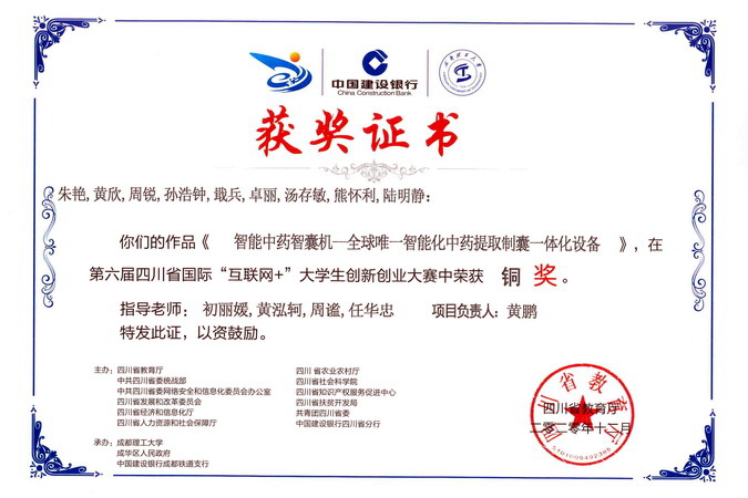 近日,第六届四川省“互联网+”大学生创新创业大赛公布了获奖名单,学院参赛团队荣获省级银奖1项,铜奖5项。其中机电工程系吴先洪负责项目《绿色助力-燃料电池客车四合一辅助电源》(指导教师:周虎、罗健玮、强永军)获得省级银奖;药学系项目《土地卫士—一种可控时降解富含养分的新型地膜技术》《蕉原冻疮膏-严寒中的绿色守卫者》《烯氟科技---新型智能石墨烯复合材料除氟设备开创者》《智能中药智囊机—全球唯一智能化中药提取智囊一体化设备》、财经管理系项目《华享众创信息技术服务有限公司》5个项目获得省级铜奖。