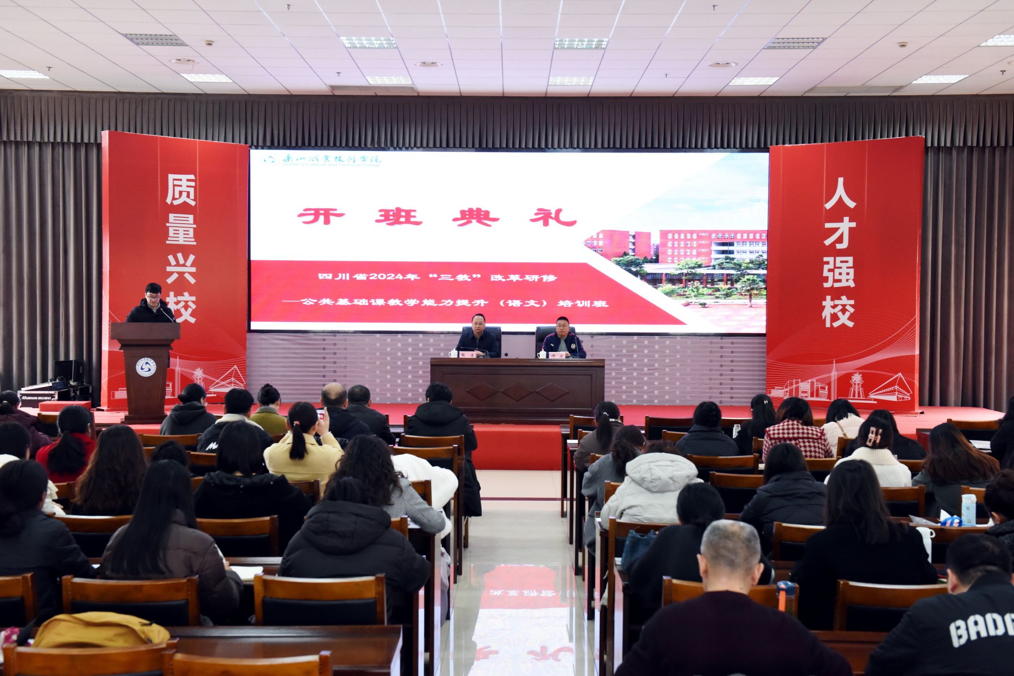 12月2日,四川省“三教”改革研修——公共基础课教学能力提升(语文)培训班在beat365亚洲版官网开班。学校党委副书记、工会主席张佳出席开班仪式并致辞,素质教育学院相关负责人、任课教师和来自全省各中职学校的近100名学员参加,人事处相关负责人主持开班仪式。
