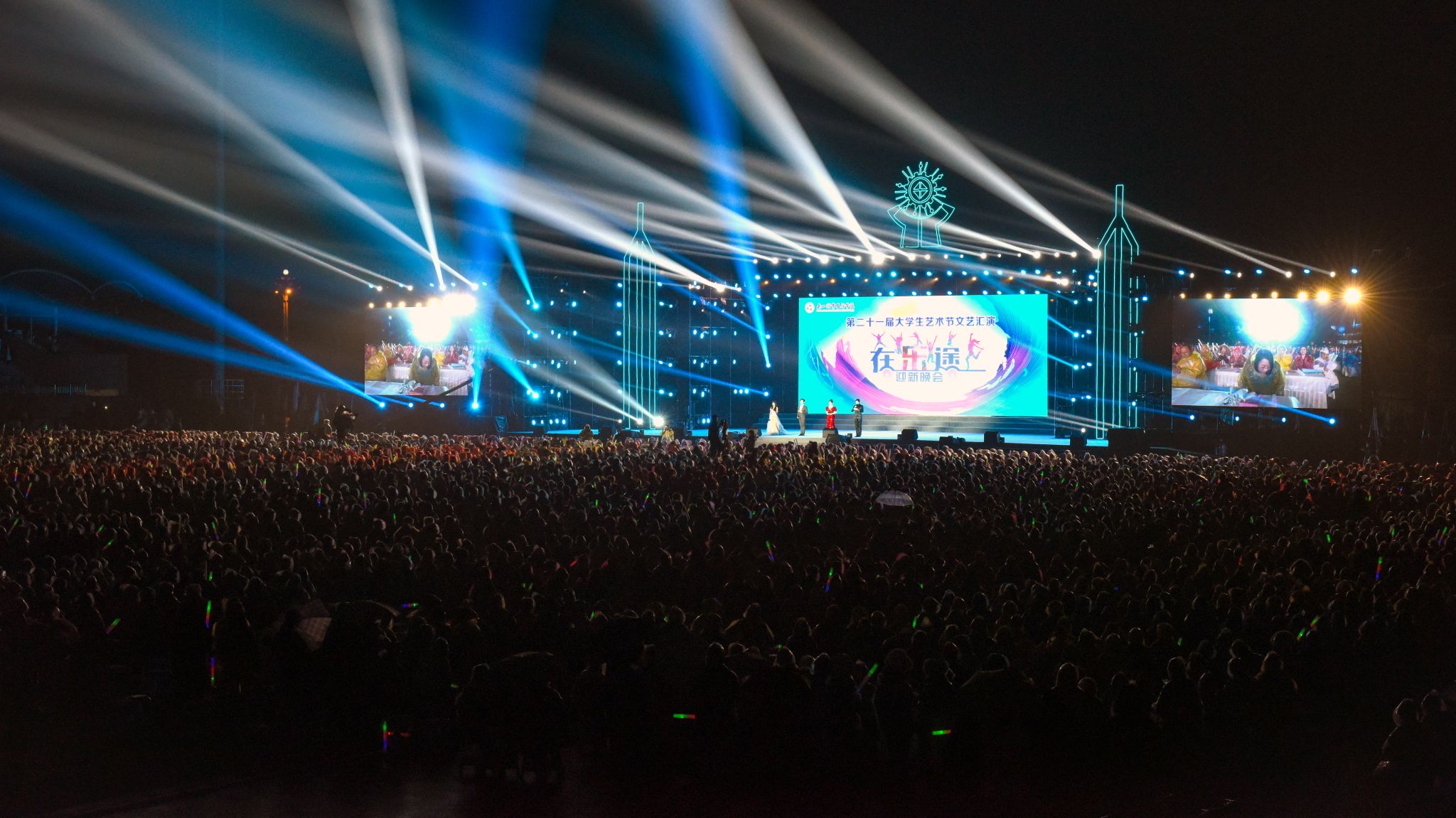 2024年12月22日晚,beat365亚洲版官网主体育场灯火辉煌,人声鼎沸,学校第二十一届大学生艺术节文艺汇演暨“在乐途”迎新晚会在此顺利举行,1200余名师生登台表演,全校师生欢聚体育场,共享了一场视听盛宴。