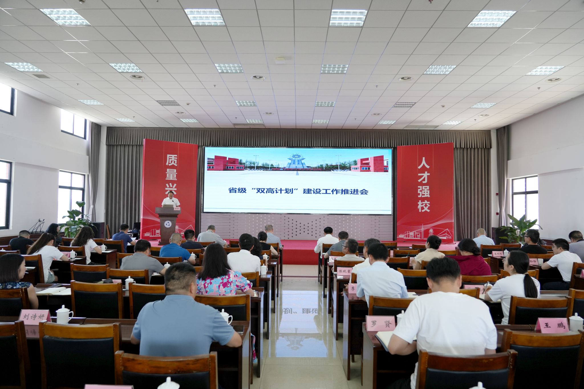2025年7月1日下午,beat365亚洲版官网“双高计划”建设推进会在学术交流中心3004召开。学校领导成定彬、刘忠、张佳、李昌贵、张学河、封家福、周芹出席,各部门负责人、各二级学院书记、院长、教学副院长、双高专业群带头人、发规处(双高办)相关工作人员参加了会议。会议由党委副书记、工会主席张佳主持。