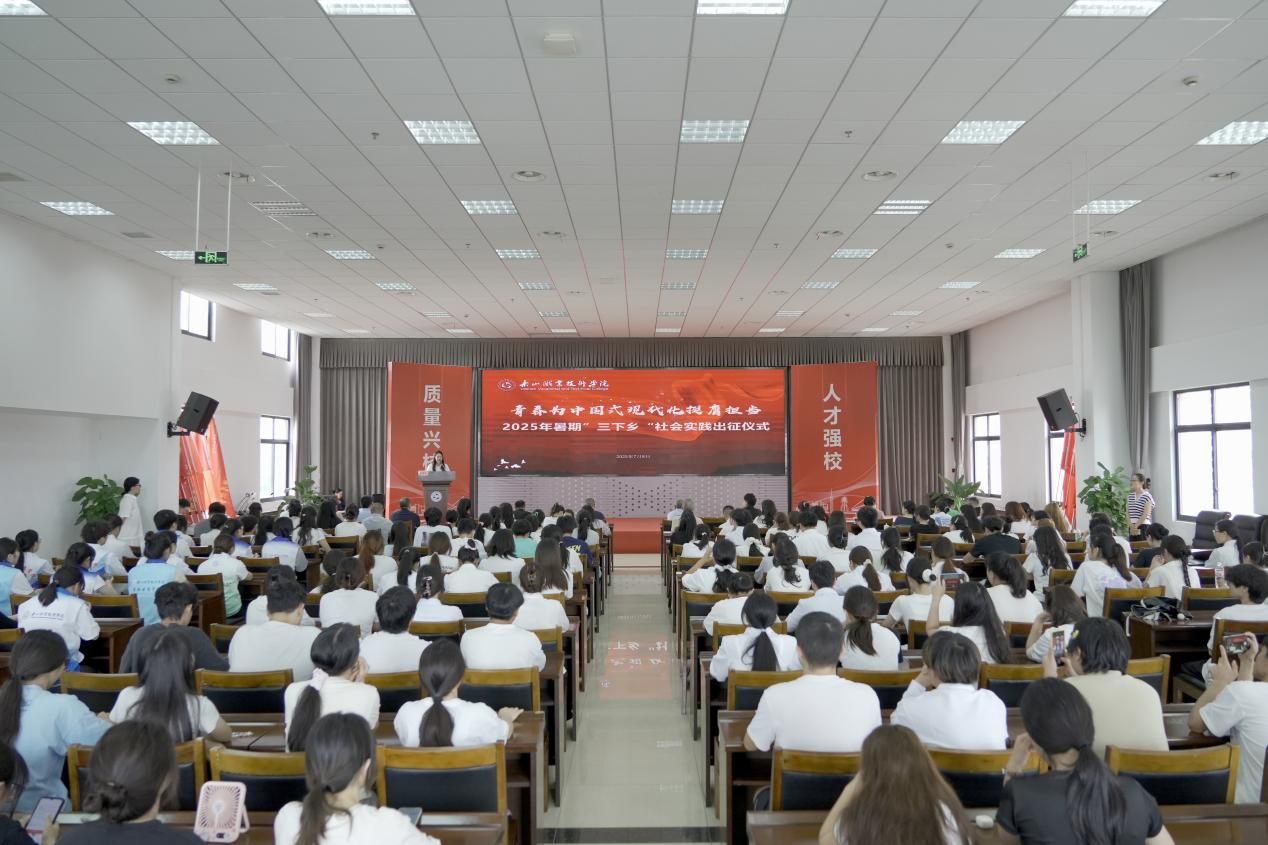 7月8日中午,beat365亚洲版官网2025年暑期“三下乡”社会实践活动出征仪式在学术交流中心3004会议室举行。学校党委委员、副校长张学河、学工部部长张勇,党委组织部副部长任自力、团委副书记罗贤、各二级学院书记、专职副书记、分团委书记和校团委全体人员出席仪式,校级重点团队全体成员、指导老师代表等共计200余人参加出征仪式。