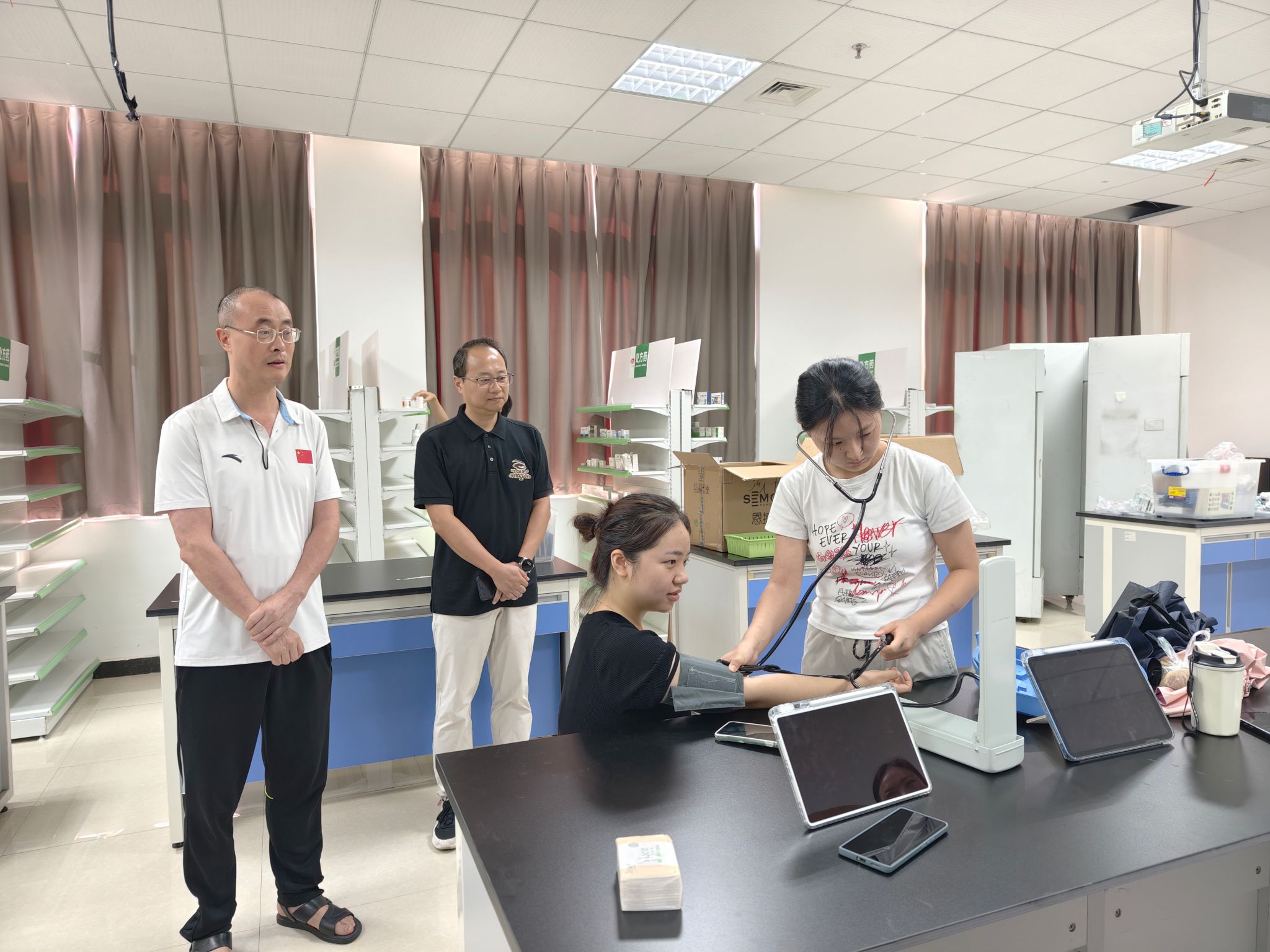 校领导一行先后走访护理康养学院、生物医药学院、新能源与材料学院、智能制造学院实训场地,与备赛师生亲切交流,详细了解训练进度与保障情况,对师生们暑期坚守岗位、全力备赛的精神给予肯定,并鼓励大家凝心聚力、奋勇拼搏,力争在赛事中取得优异成绩。