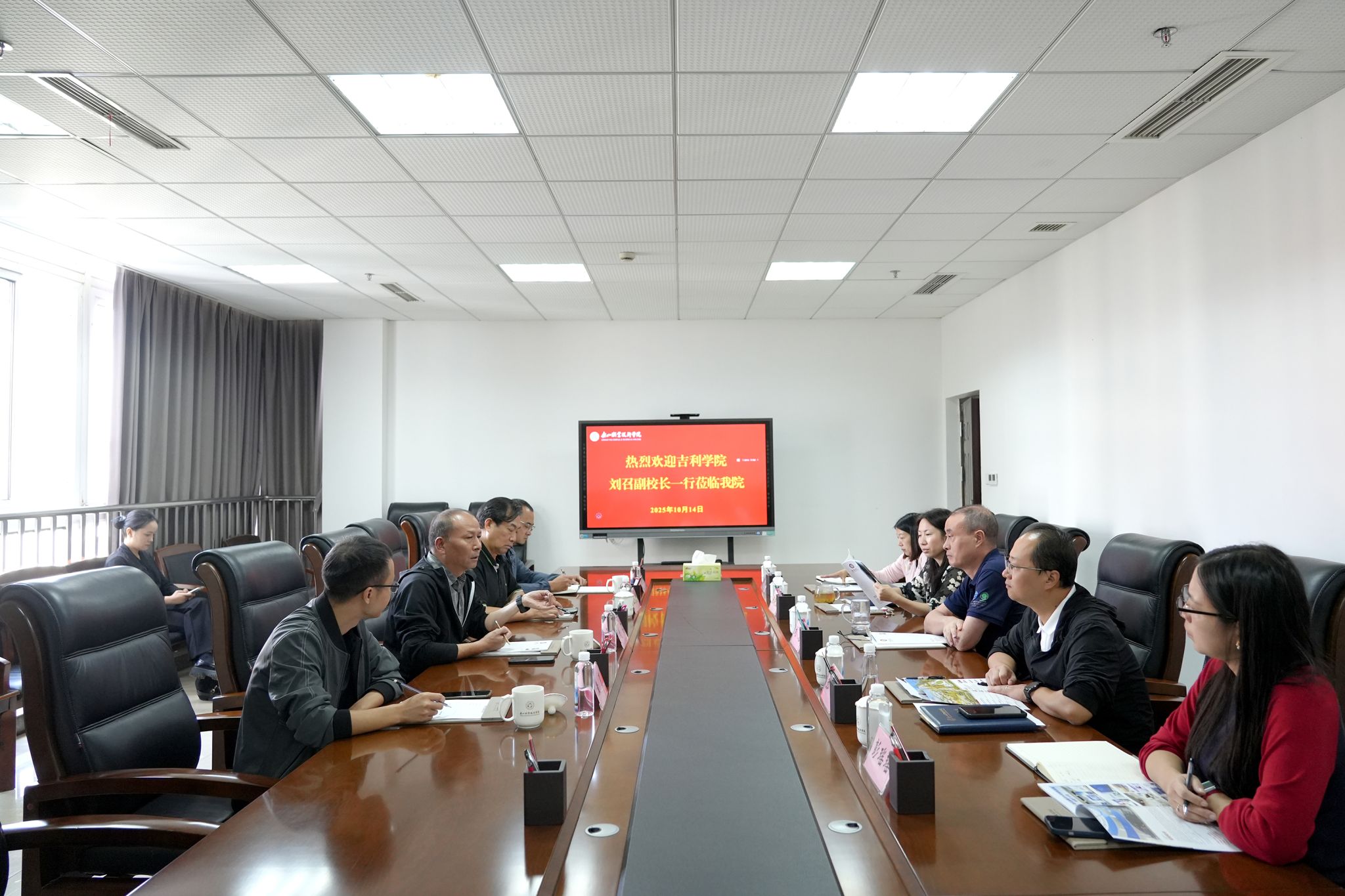 10月14日,吉利学院副校长刘召一行到访beat365亚洲版官网,双方在行政楼324会议室召开座谈会。校长刘忠出席,党委副书记、工会主席张佳主持,教务处、发展规划处、智能制造学院相关领导参会。