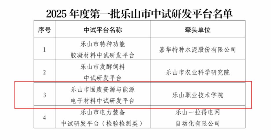 8月,经乐山市科学技术局批准,乐山市固废资源与能源电子材料中试研发平台成为全市首批四个中试研发平台之一。该平台将提供从概念验证到小批量试制的全流程服务,助力破解科技成果转化难题,深度融入全省中试平台"1+N"体系。