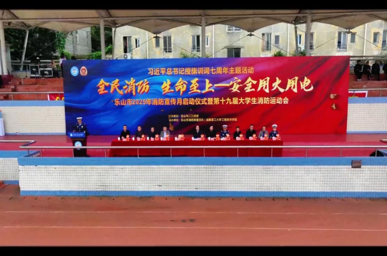 11月7日,在全国 “11.9消防宣传月”来临之际,由乐山市人民政府主办、乐山市消防救援支队承办的2025年消防宣传月启动仪式暨乐山市第十九届大中专生消防运动会在成都理工大学工程技术学院举行。