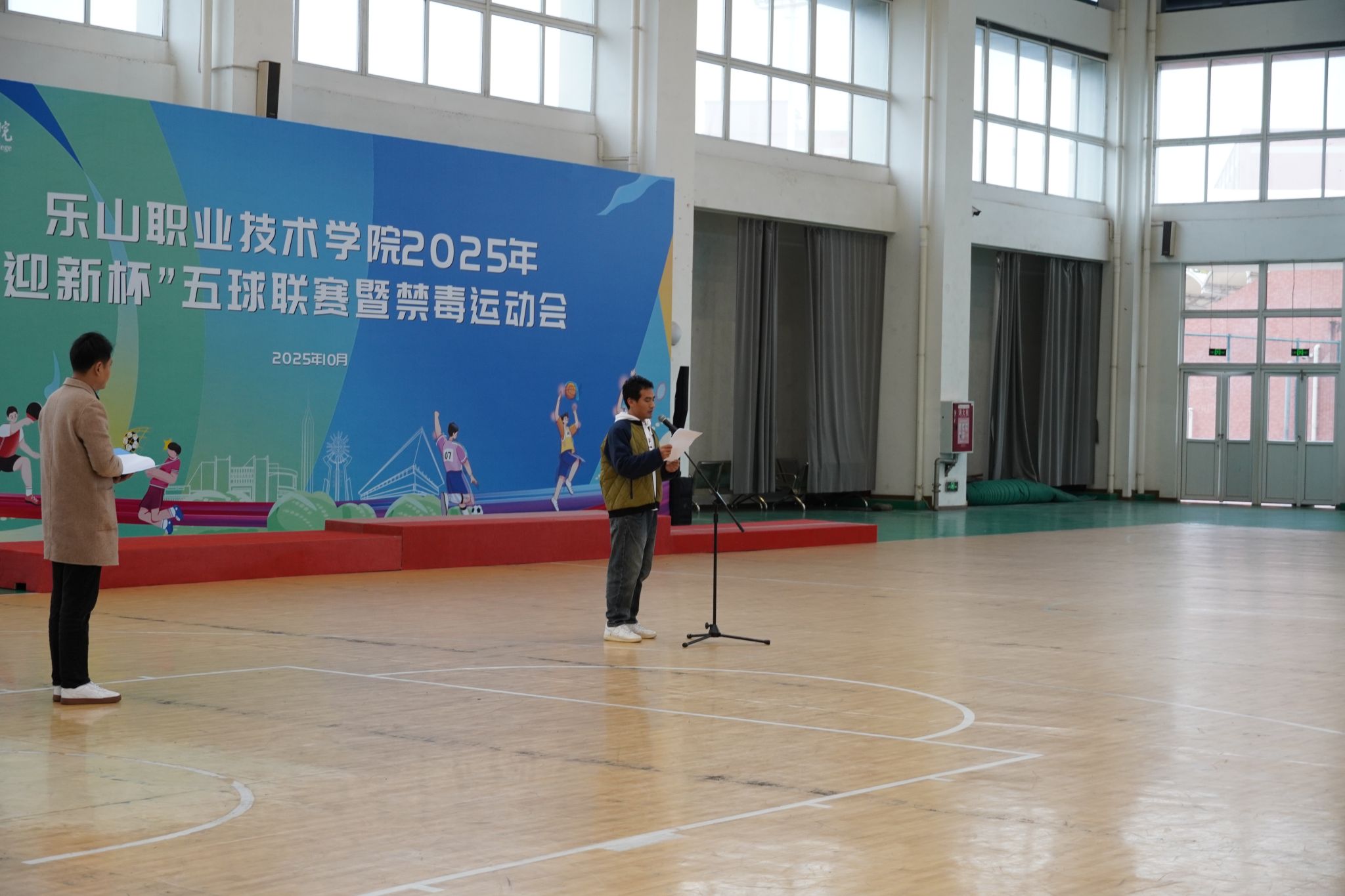 11 月 12 日 ,beat365亚洲版官网2025年“迎新杯”五球联赛暨禁毒运动会闭幕式暨颁奖仪式在体育馆隆重举行。校长刘忠,党委委员、副校长张学河,学生工作部副部长叶利丽,体育学院副院长范辰,总裁判长张繁,赞助商京东校园馆经理吴娇娇及全体参赛运动员齐聚现场,闭幕式由校团委副书记(主持工作)罗贤主持。