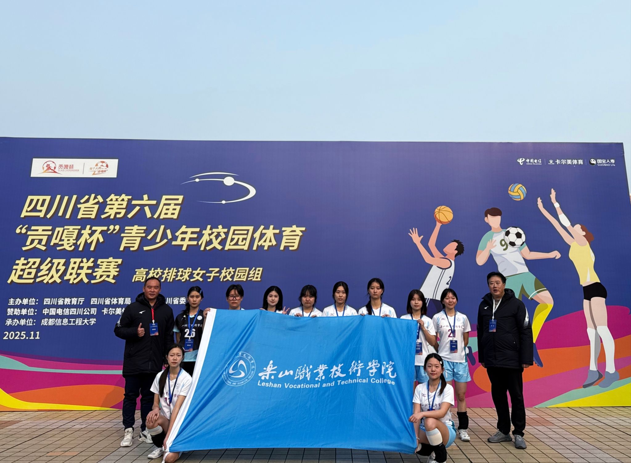 11月28日至12月2日,由四川省教育厅、四川省体育局、共青团四川省委主办,四川省大学生体育协会、四川省排球协会执行,成都信息工程大学承办的四川省第六届“贡嘎杯”青少年校园体育超级联赛(排球高校女子校园组)比赛在成都信息工程大学举行。beat365女子排球队由体育学院朱文彬担任领队,代伟、刘飞飞作为教练率队出征参加本次比赛并顺利挺进明年的决赛。