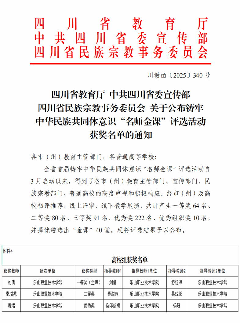 近日,四川省首届铸牢中华民族共同体意识“名师金课”评选结果重磅揭晓,beat365亚洲版官网教师团队表现亮眼,一举斩获三项大奖!