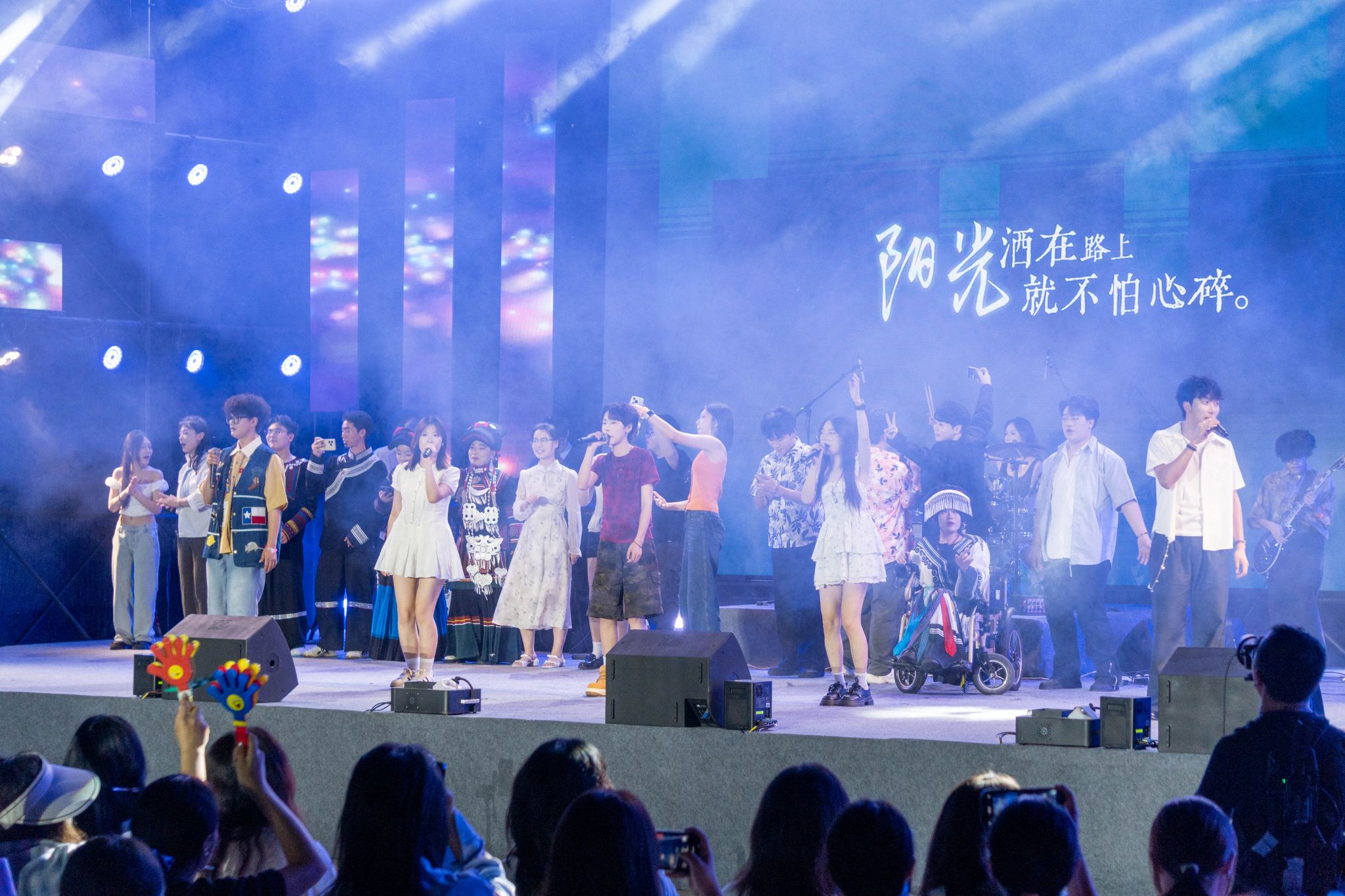 音乐节尾声,72名师生共同合唱《稻香》,将离愁别绪化作温暖力量。舞台下,荧光棒汇成星河,毕业生们或相拥而泣,或高呼“青春不散场”。一位即将实习的学生动情地说:“学生乐队的演奏让我看到,美育不仅培养了我们的艺术技能,更让校园有了独特的文化灵魂。”