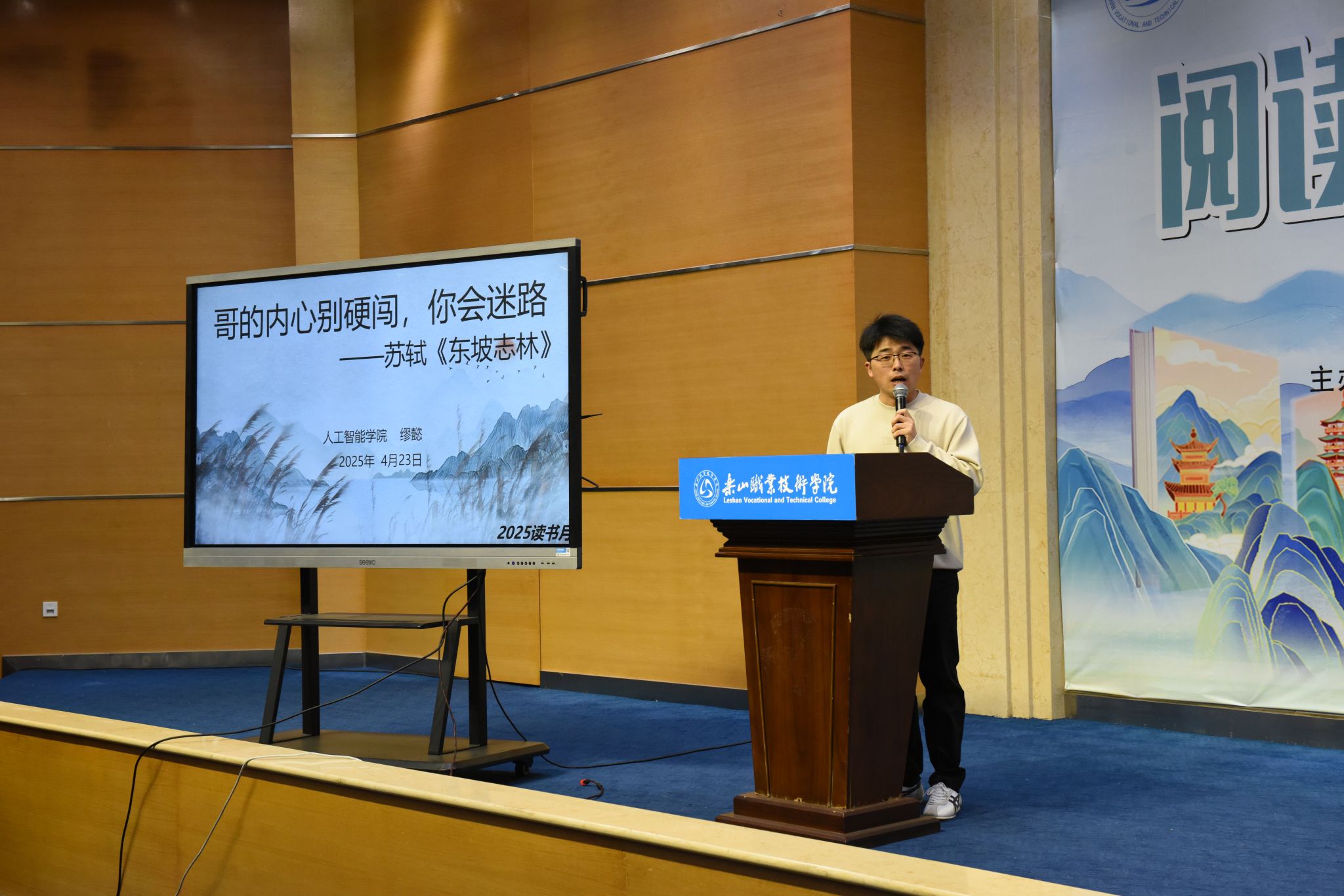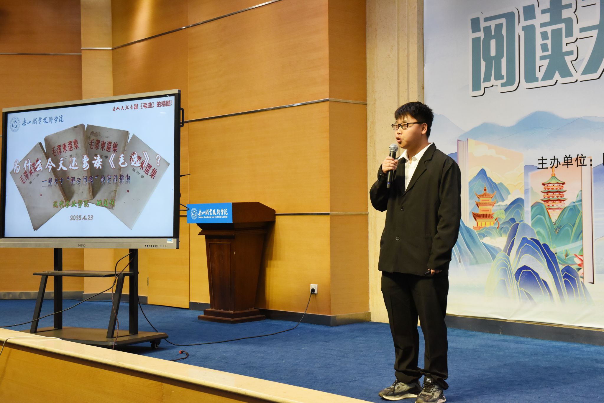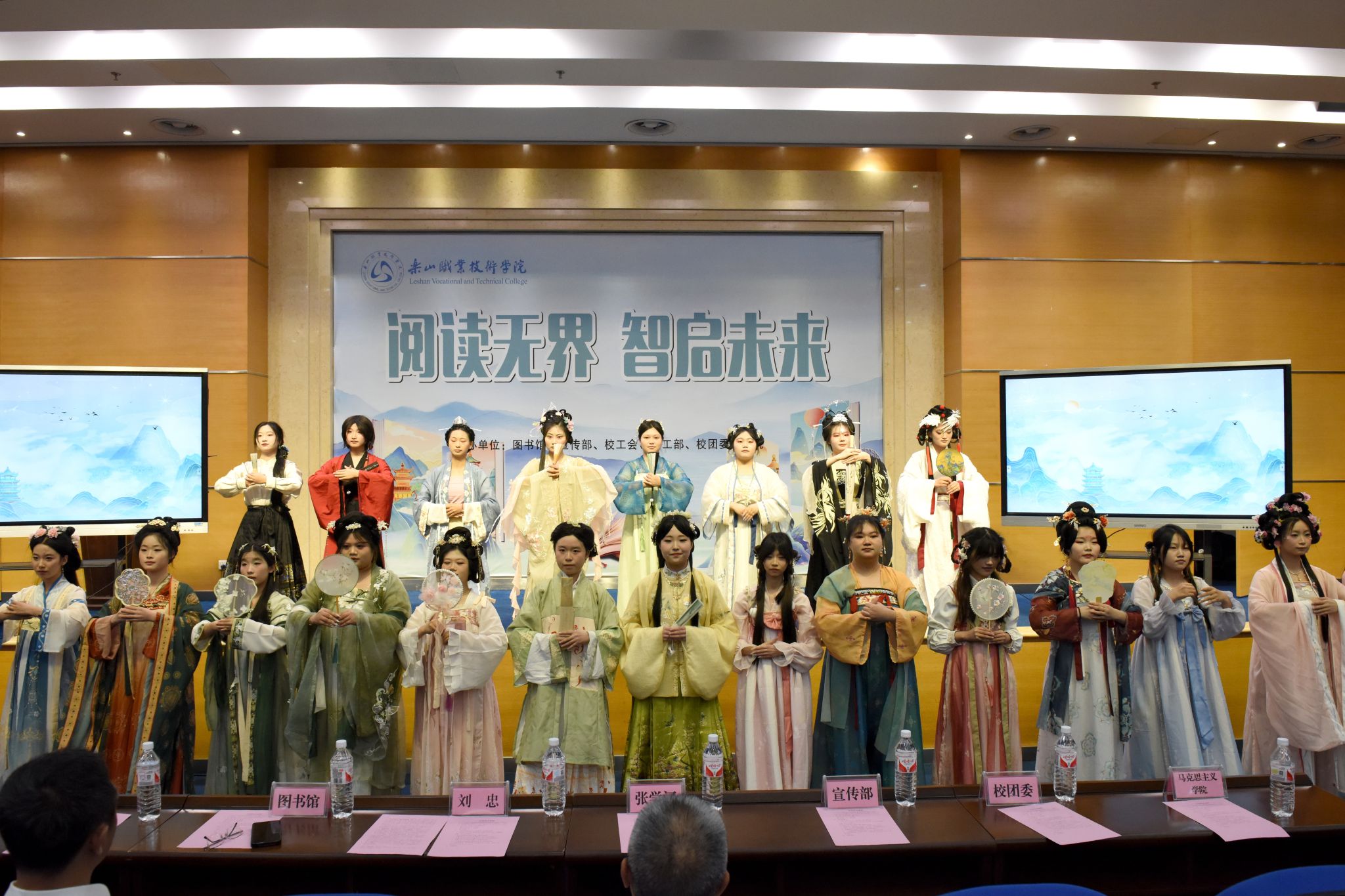 活动现场,刘忠、张学河为第三届“阅读之星”王茂嶙、吴胜香颁发了证书。张学河为同学们荐书《积极干预心理书系》,让在座的师生了解了积极心理学的上医治未病理念。李娟老师系统解读了“十四五”期间图书馆馆藏资源建设成果。杨瑜双老师解析《在文化溯源中读懂“何以中国”》的文化密码,缪懿老师以新视角解读《东坡志林》。米易然同学的《我从未如此眷恋人间》让在座的观众感受到人间值得,万物可爱,姚国伟同学结合身边的小事解读了如何学好《毛泽东选集》,同学们还带来了《阅读有光》合唱、《这盛世如您所愿》诗词朗诵、汉服走秀串联等节目。启动仪式突破传统模式,巧妙融合学术报告、艺术展演与科技元素,彰显了“以文化人”的教育理念,展现了人工智能时代阅读推广的无限可能。当古籍典册遇见数字技术,当传统汉服邂逅现代设计,beat365亚洲版官网正以创新姿态书写新时代职业院校文化育人的精彩篇章。