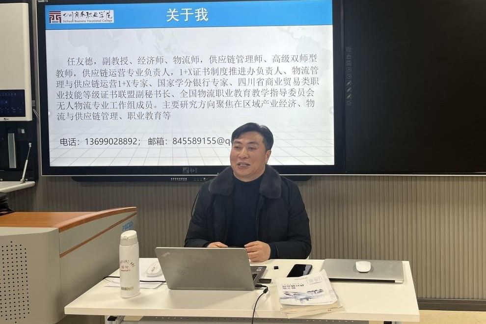 任友德从高职教材现状、“新形态”教材选题等方面入手为大家讲解了“新形态”教材的特点,随后从团队构建、大纲研制、职业能力清单、体质构建等方面系统地讲述了在教材编写全过程中每一步应该怎么做,并结合自己编写的《数字化供应链运营》和《智慧仓配运营》以及相关工作经历为大家进行举例说明。