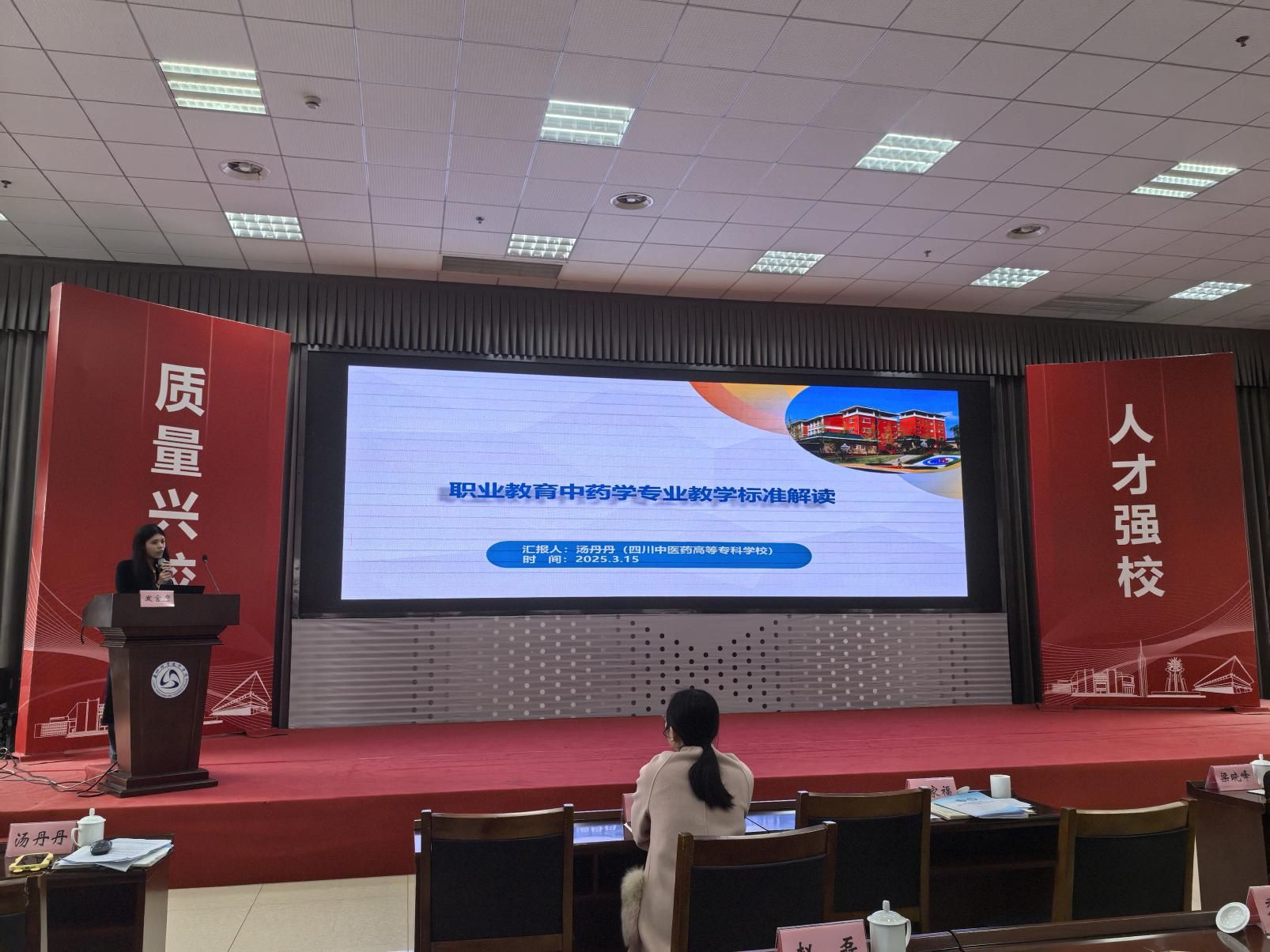 四川中医药高等专科学校中药学专业负责人汤丹丹介绍了该校中药学专业的发展历程,详细解读了中药学国家教学新标准,帮助参会者更好地理解和把握最新的教育教学要求和发展方向。