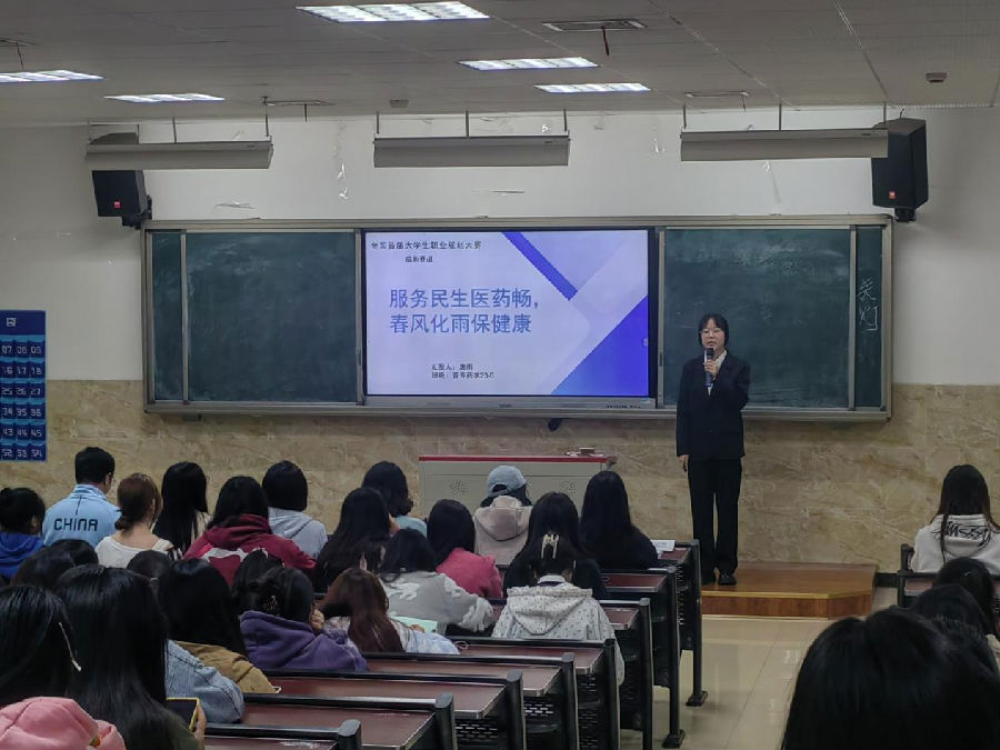 青春不设限,梦想照进现实。为了引导同学们深入探索自我认知,明确个人兴趣、能力及价值观,并据此设定清晰的职业目标与发展蓝图,2024年11月10日,生物医药学院“职业生涯规划大赛”决赛在教学楼阶梯教室开展,生物医药学院党总支副书记黎缘、学生科科长张俊、院团委书记朱晓琴、专职辅导员卢妮娜、谢雨芩、刘钱、蒋晓娟等老师担任本次活动评委,生物医药学院200余名同学参加。