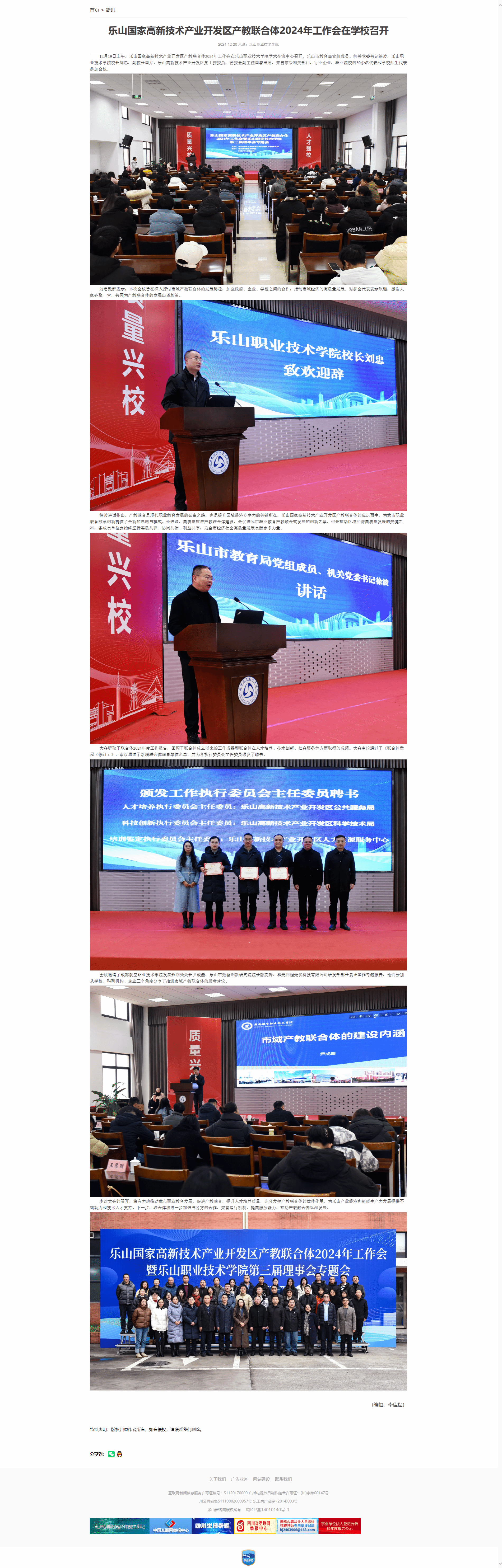 乐山新闻网:乐山国家高新技术产业开发区产教联合体2024年工作会在学校召开