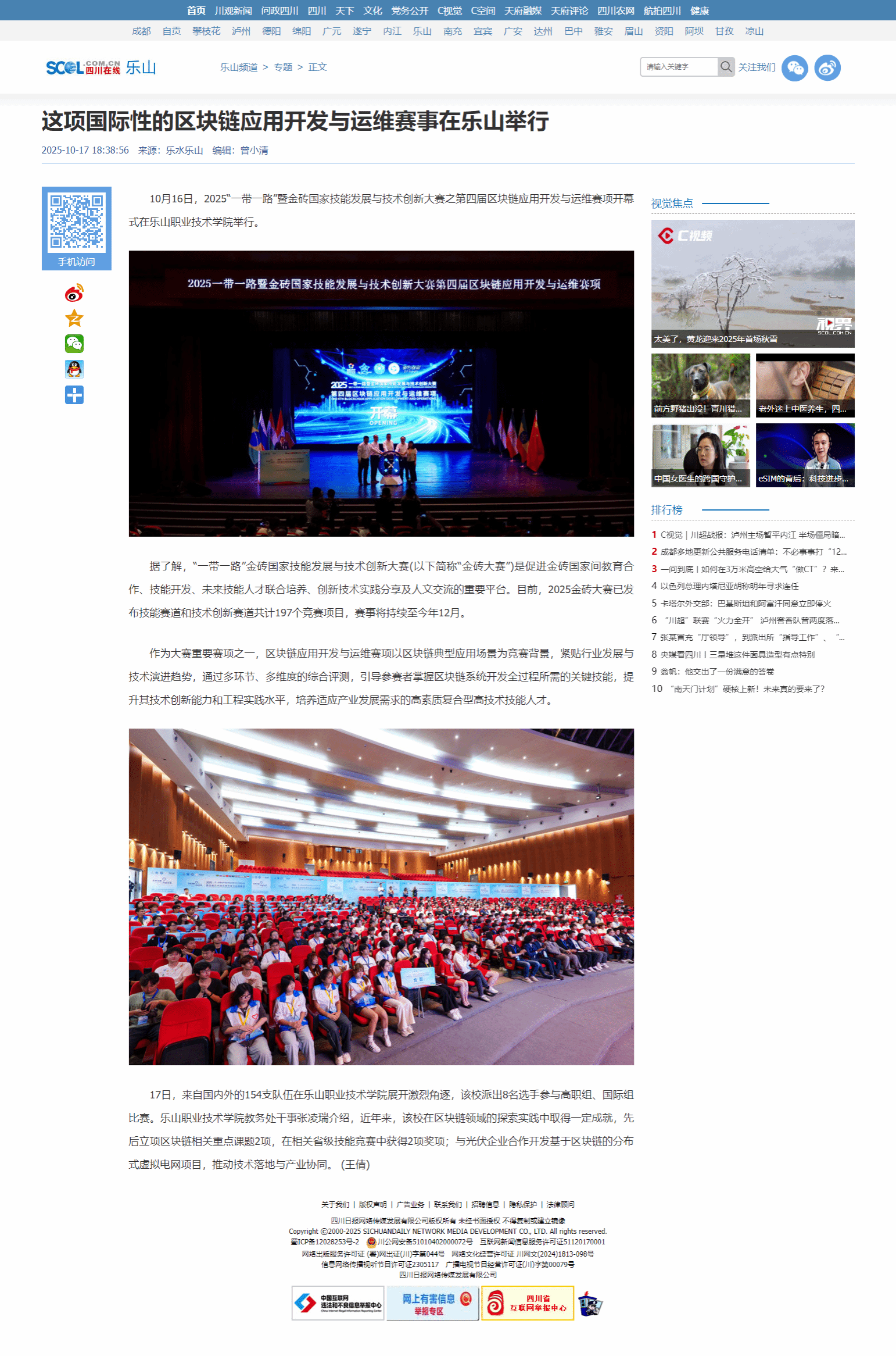 川教融媒:2025一带一路暨金砖国家技能发展与技术创新大赛第四届区块链应用开发与运维赛项举行