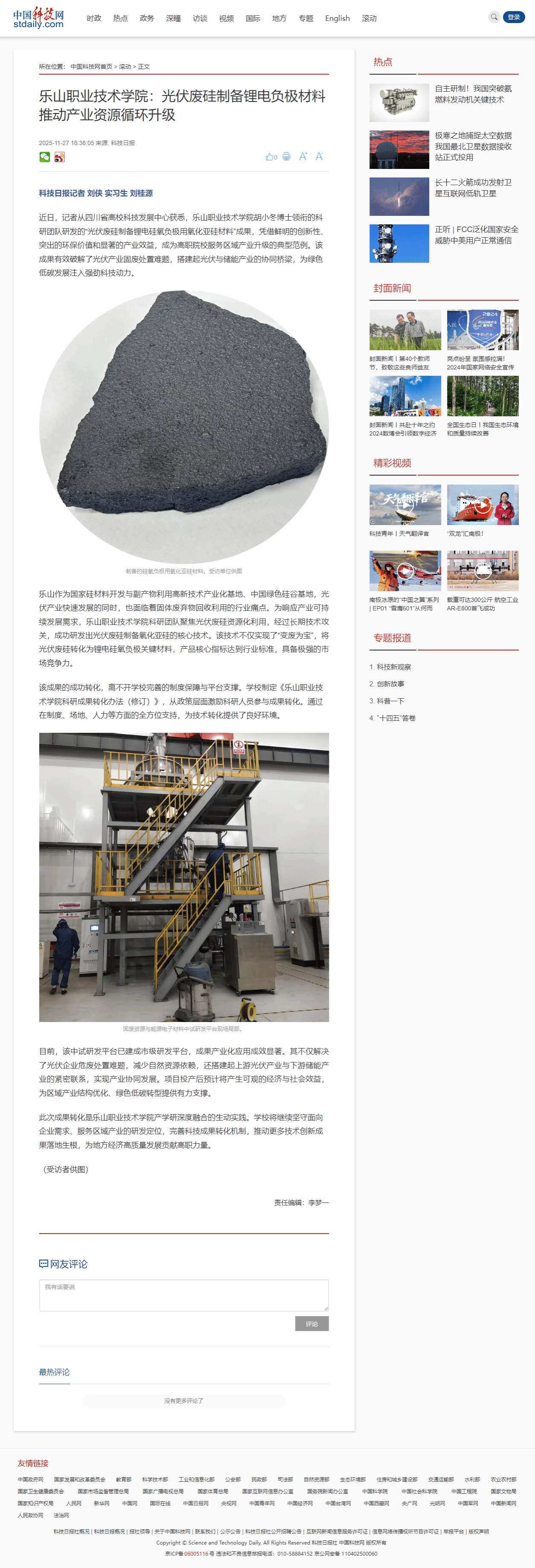 中国科技网:beat365亚洲版官网——光伏废硅制备锂电负极材料 推动产业资源循环升级