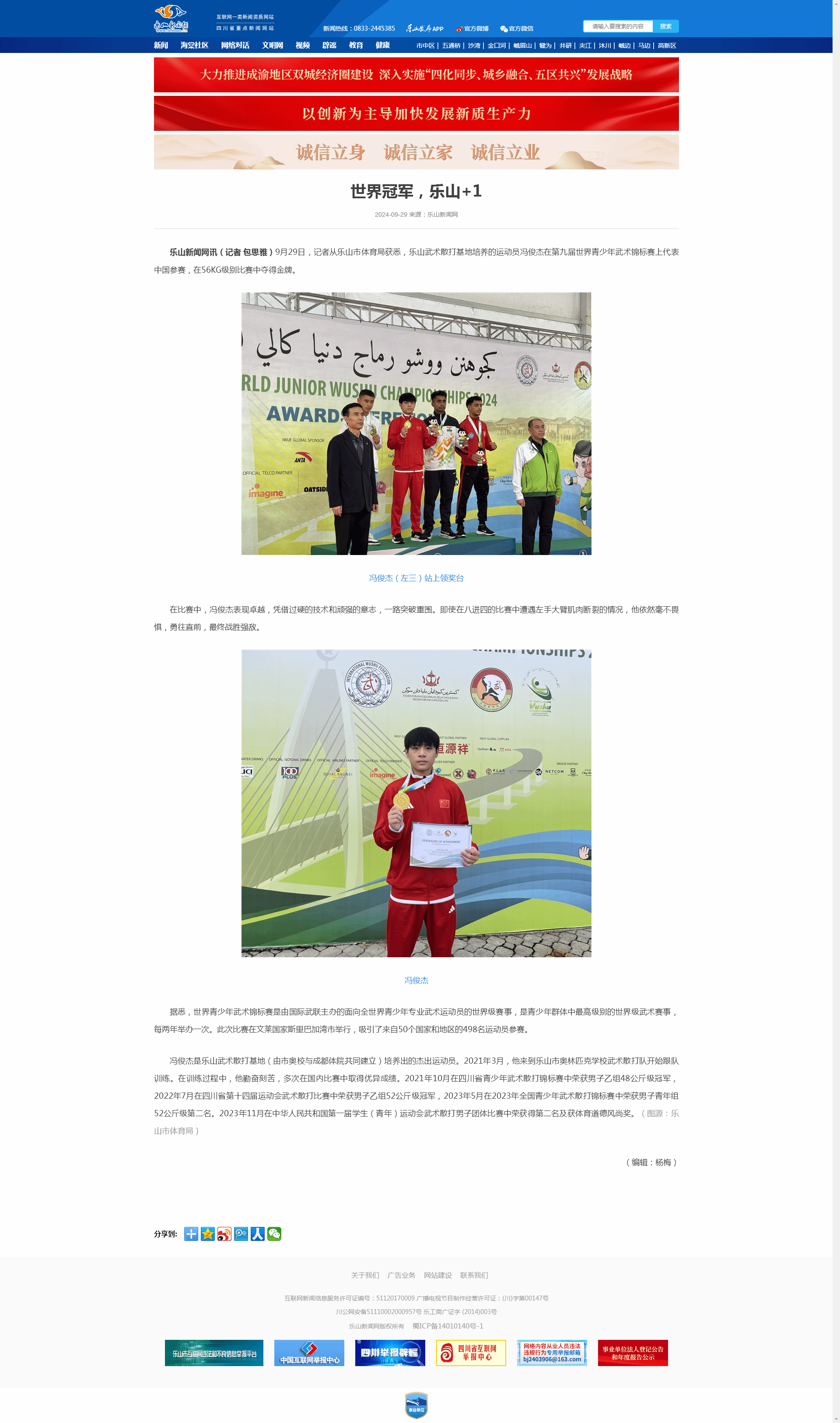 乐山新闻网:世界冠军,乐山+1