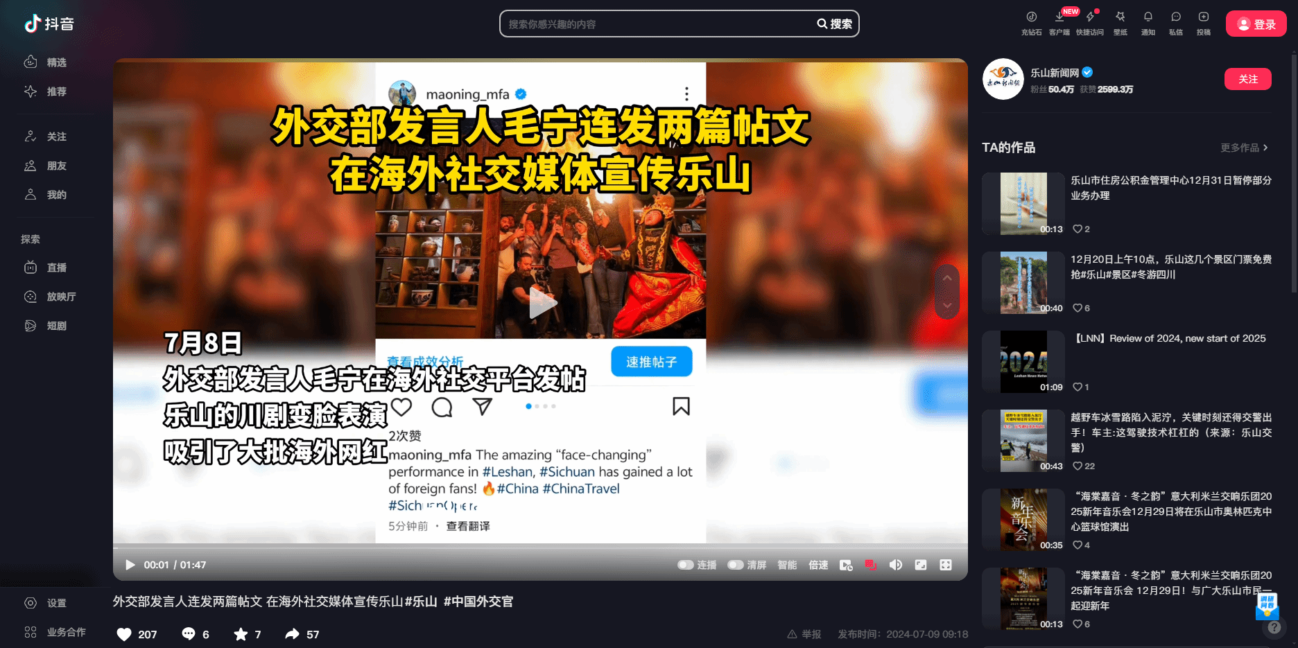 乐山新闻网:外交部发言人连发两篇帖文 在海外社交媒体宣传乐山