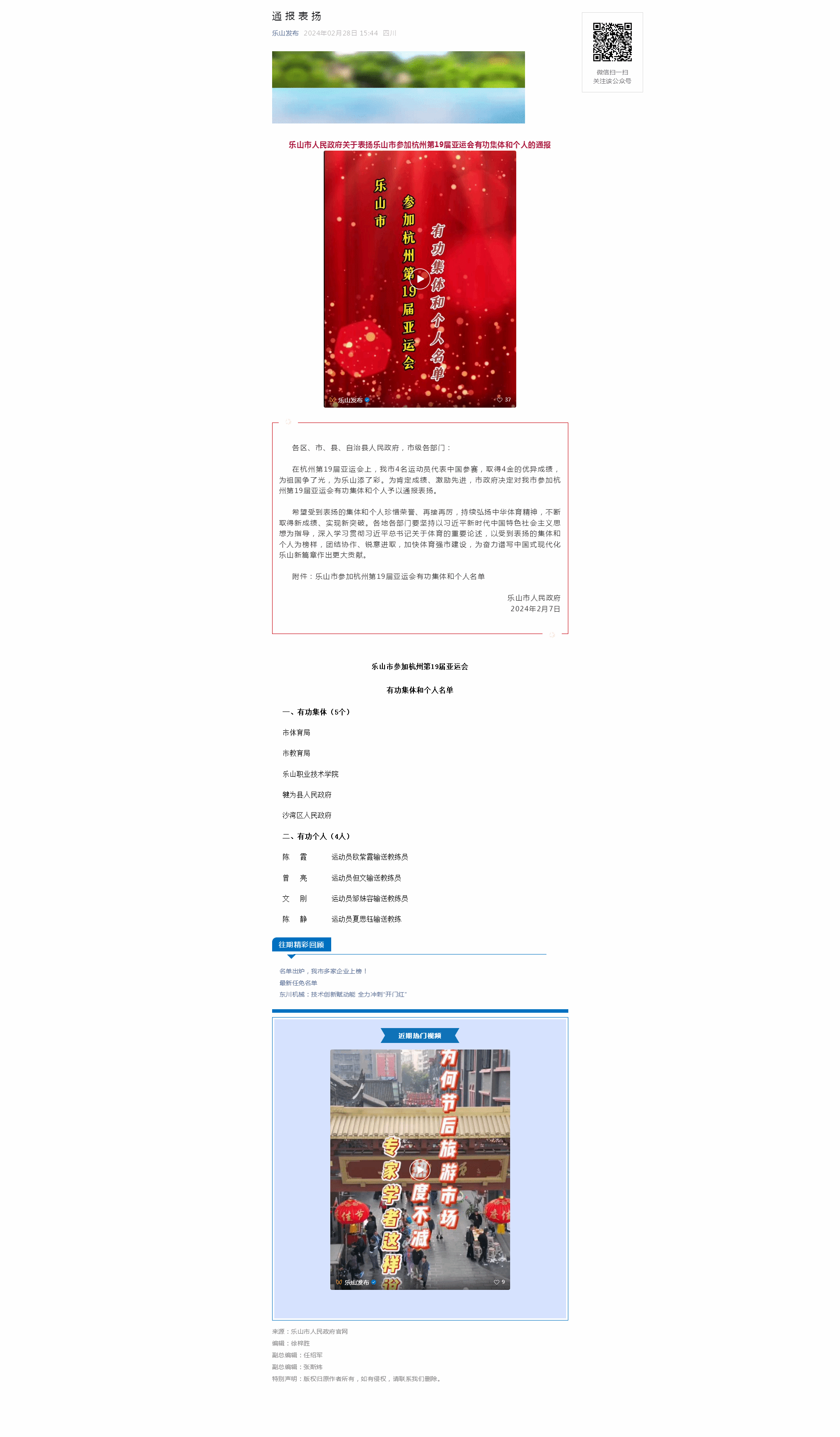 乐山发布:通报表扬