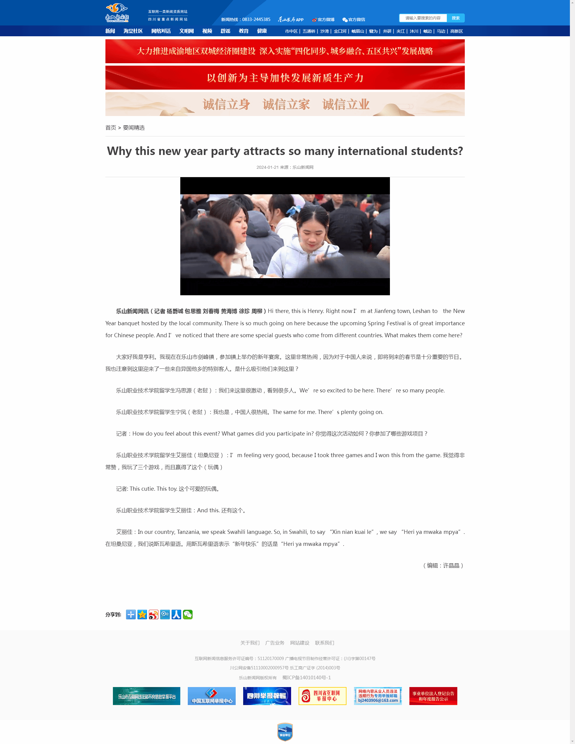 乐山新闻网:Why this new year party attracts so many international students?