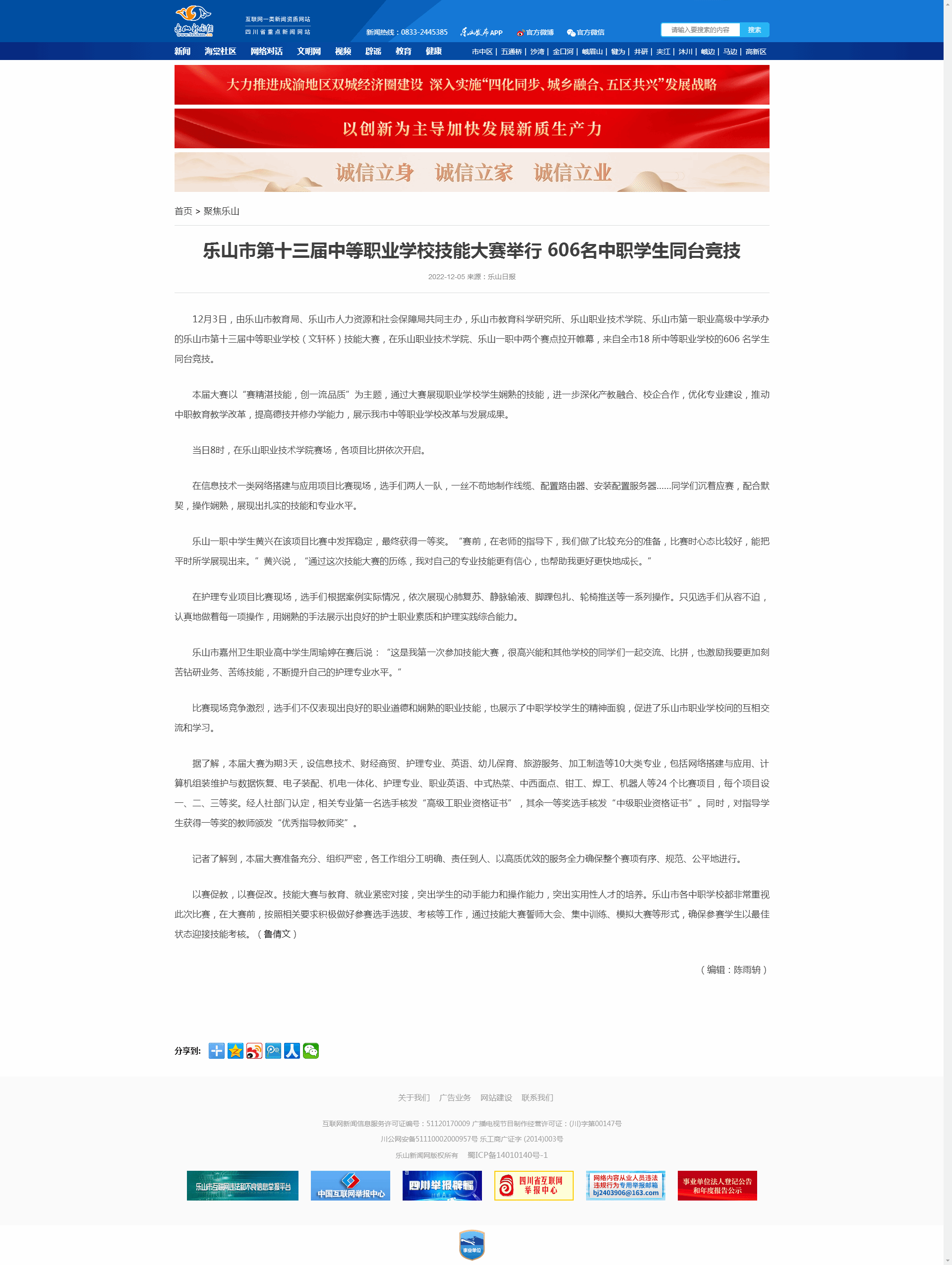 乐山新闻网:乐山市第十三届中等职业学校技能大赛举行 606名中职学生同台竞技