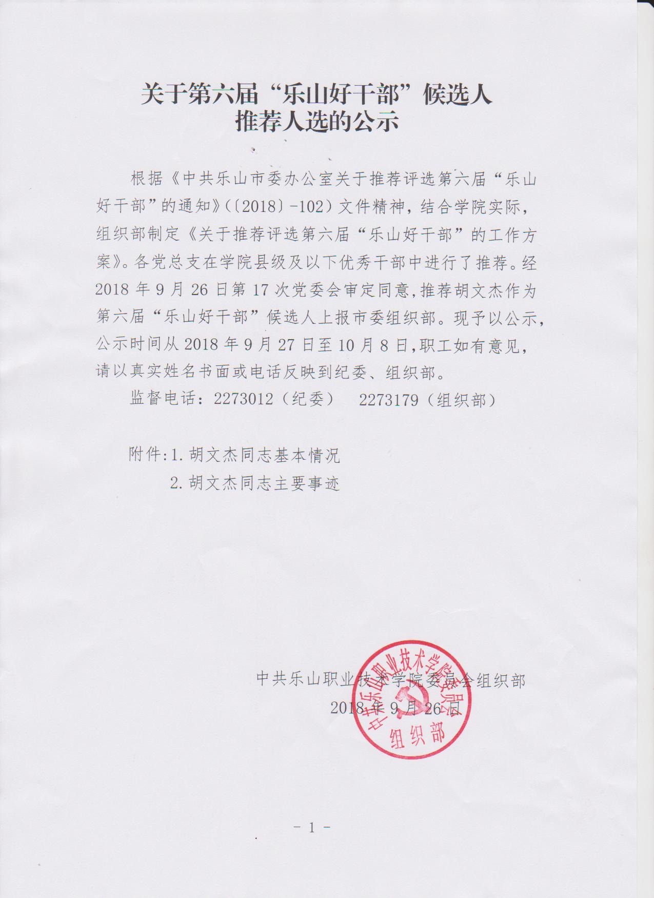 关于第六届“乐山好干部”候选人推荐人选的公示